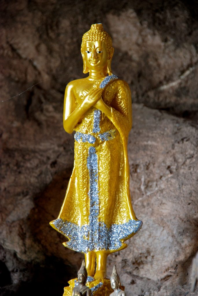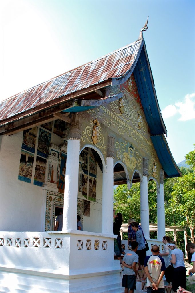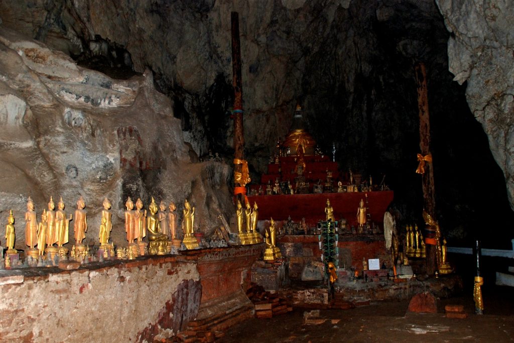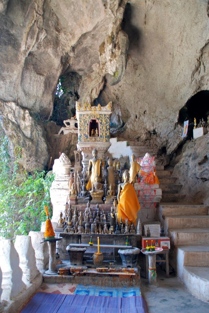 Nach dem Frühstück sind wir schon gegen acht Uhr gestartet, um früh in Luang Prabang anzukommen. Auf dem Weg haben wir allerdings noch einen Stopp bei den Pak Ou-Höhlen gemacht, in denen insgesamt viertausend große und kleine Buddha-Statuen stehen. Dort haben wir unsere Blumen aus Ban Lad Khammune als Gaben zurückgelassen.