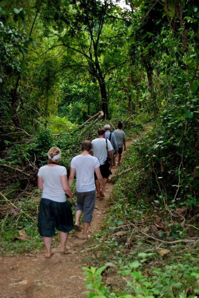 Nach der Baci-Zeremonie sollte eigentlich Schluss sein mit dem Programm, aber weil zum einen noch das Ende der Buddhistischen Regenzeitklausur gefeiert wurde und wir für diese Saison die letzte Tourgruppe waren, die in Ban Lad Khammune anhielt, ging die Party danach erst richtig los. Zuerst führten einige Mädchen einen laotischen Tanz auf und danach wurden wir alle aufgefordert mitzumachen. Zu thailändischer Popmusik, Rap und Justin Bieber – was der iPod unseres laotischen Guides eben hergab – wurde danach ausgelassen getanzt. Die Kinder hatten besonderen Spaß daran, dass nachzutanzen, was man ihnen vorgetanzt hat. Und so haben dann einige aus unserer Gruppe versucht, den Kindern den Timewarp beizubringen 🙂