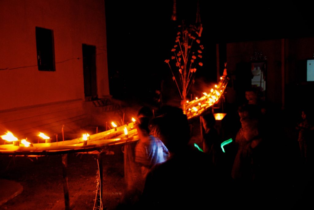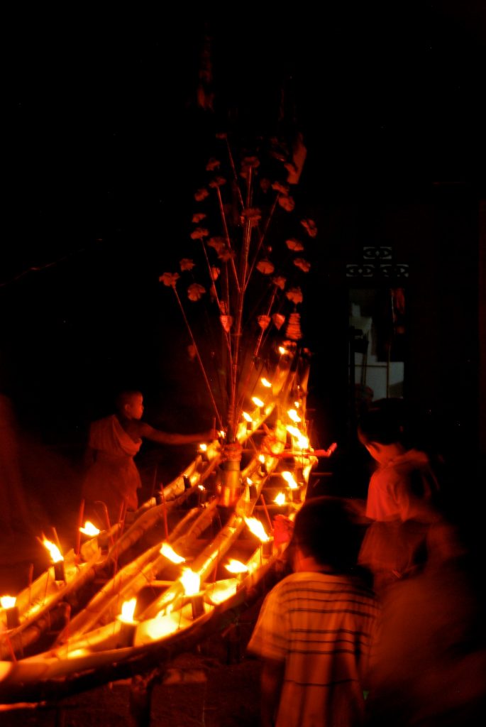 Irgendwann wurde dann noch ein von den Mönchen des Ortes gebautes Boot mit Kerzen zu Wasser gelassen.
