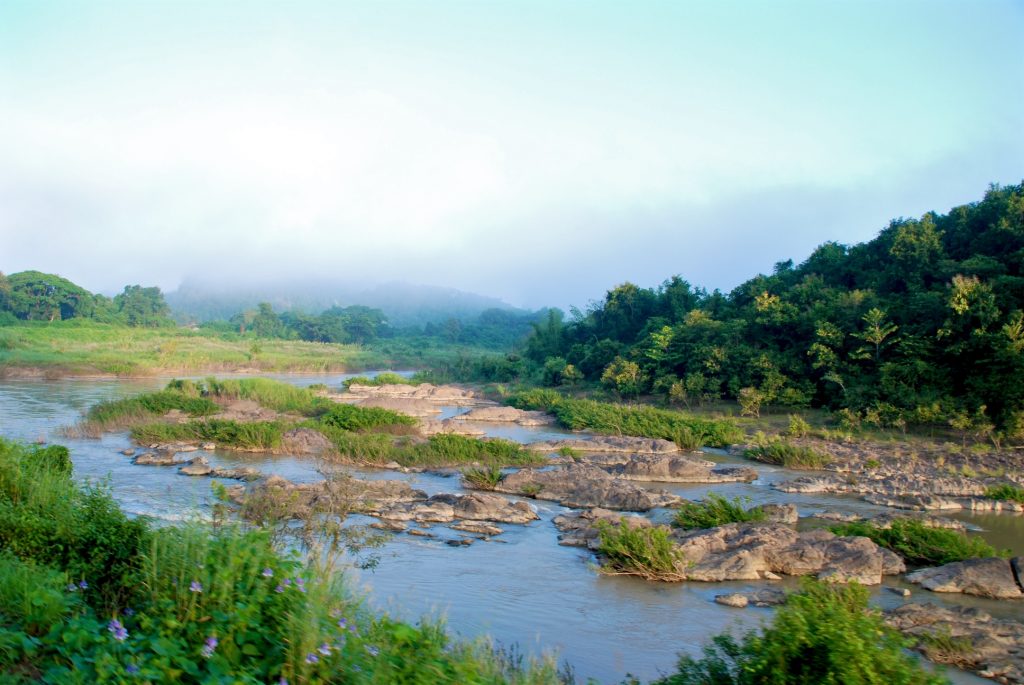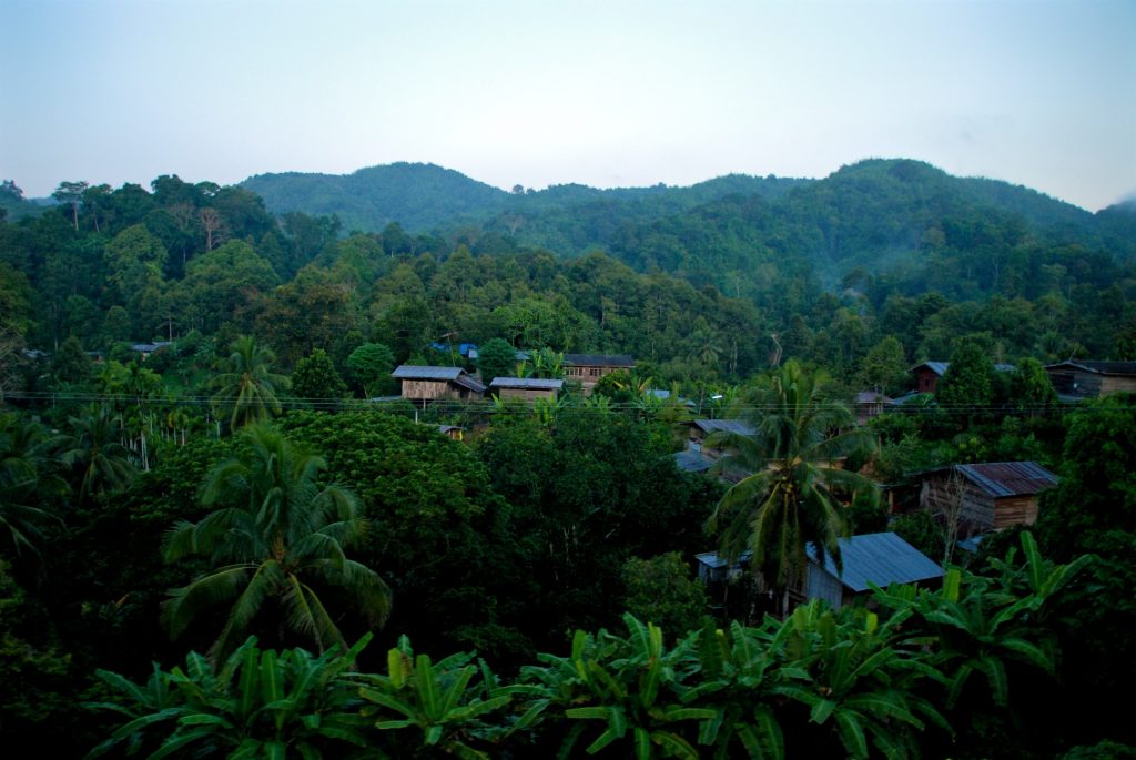 Am Anfang gab es nur Dschungel zu sehen, aber nach einer Weile tauchten dann auch vereinzelte Hütten, später auch Dörfer und Reisfelder auf.