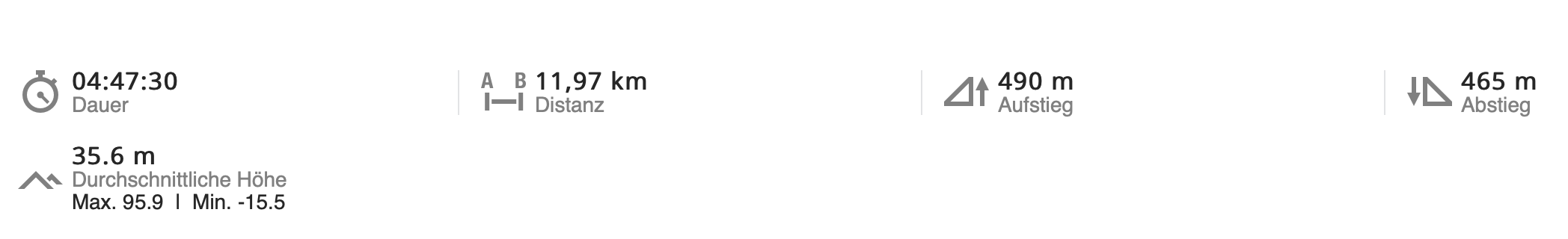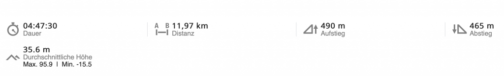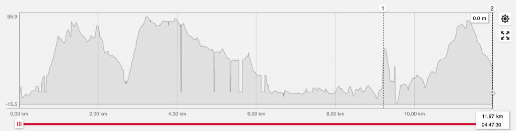 Ich habe die Wanderung mit meiner Uhr aufgezeichnet, aber wenige Meter vor der Ankunft am Strand hat der Akku seinen Geist aufgegeben, sodass das letzte Stückchen der Wanderung fehlt.