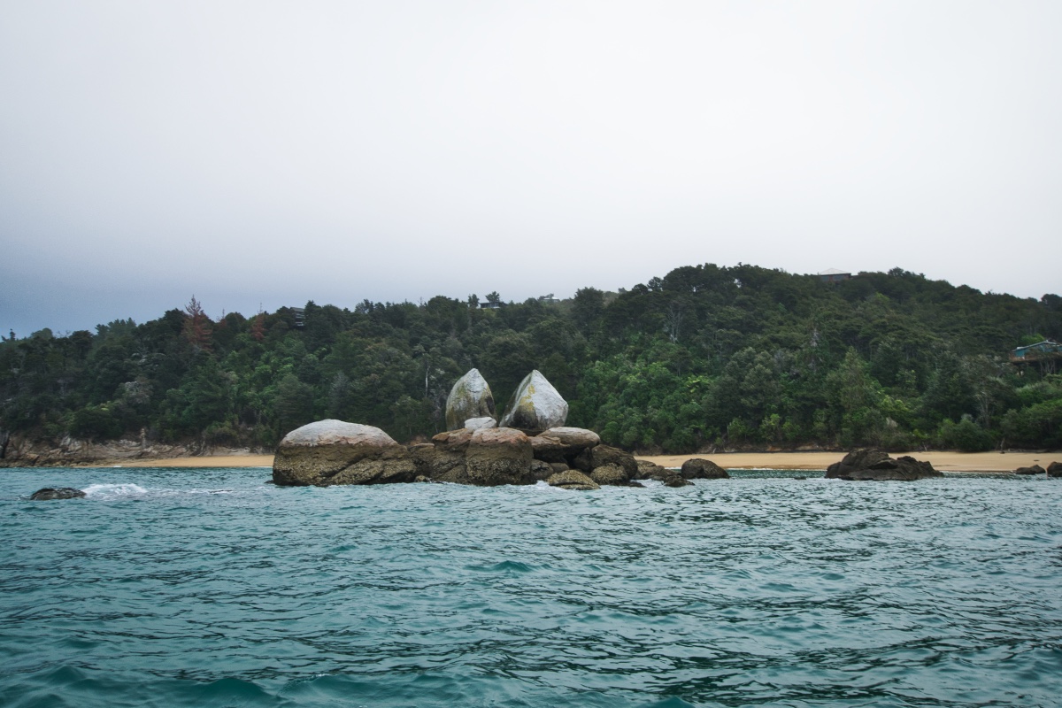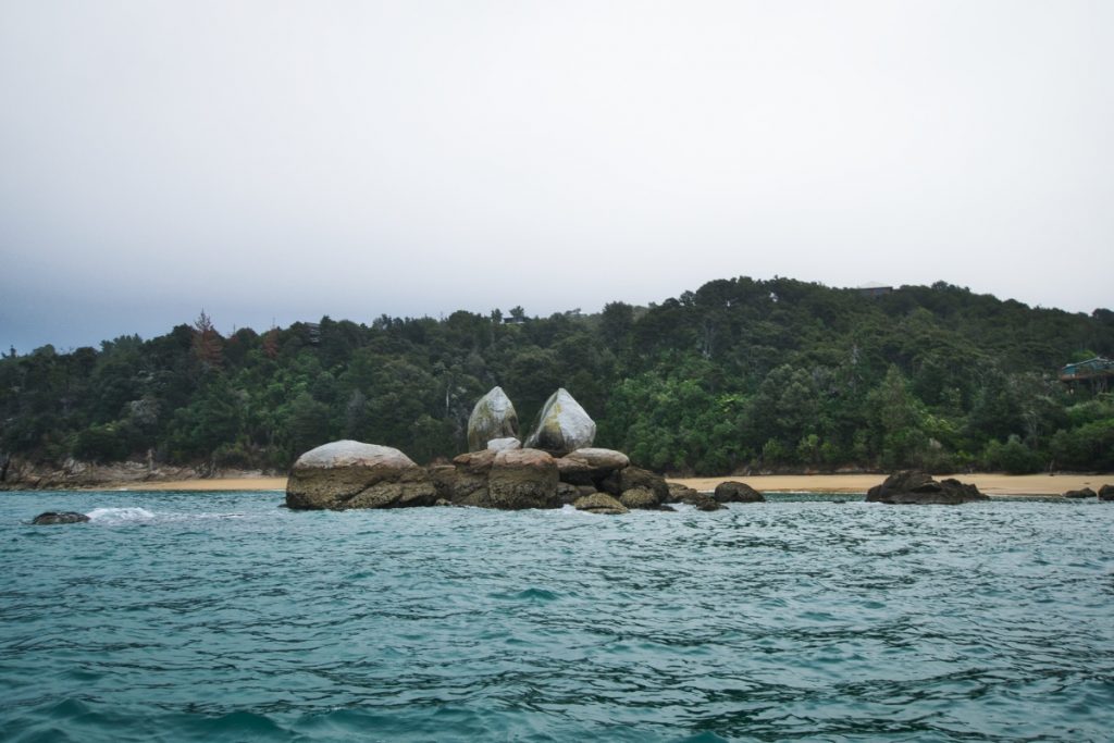 Ich hatte mich für eine Wanderung von Bark Bay bis Anchorage entschieden, aber bevor das Wassertaxi in Richtung Norden gefahren ist, um mich und die anderen Wanderer an verschiedenen Stellen im Nationalpark abzusetzen, haben wir noch einen kleinen Schlenker zu einem der Wahrzeichen der Region gemacht, dem „Split Apple Rock“.