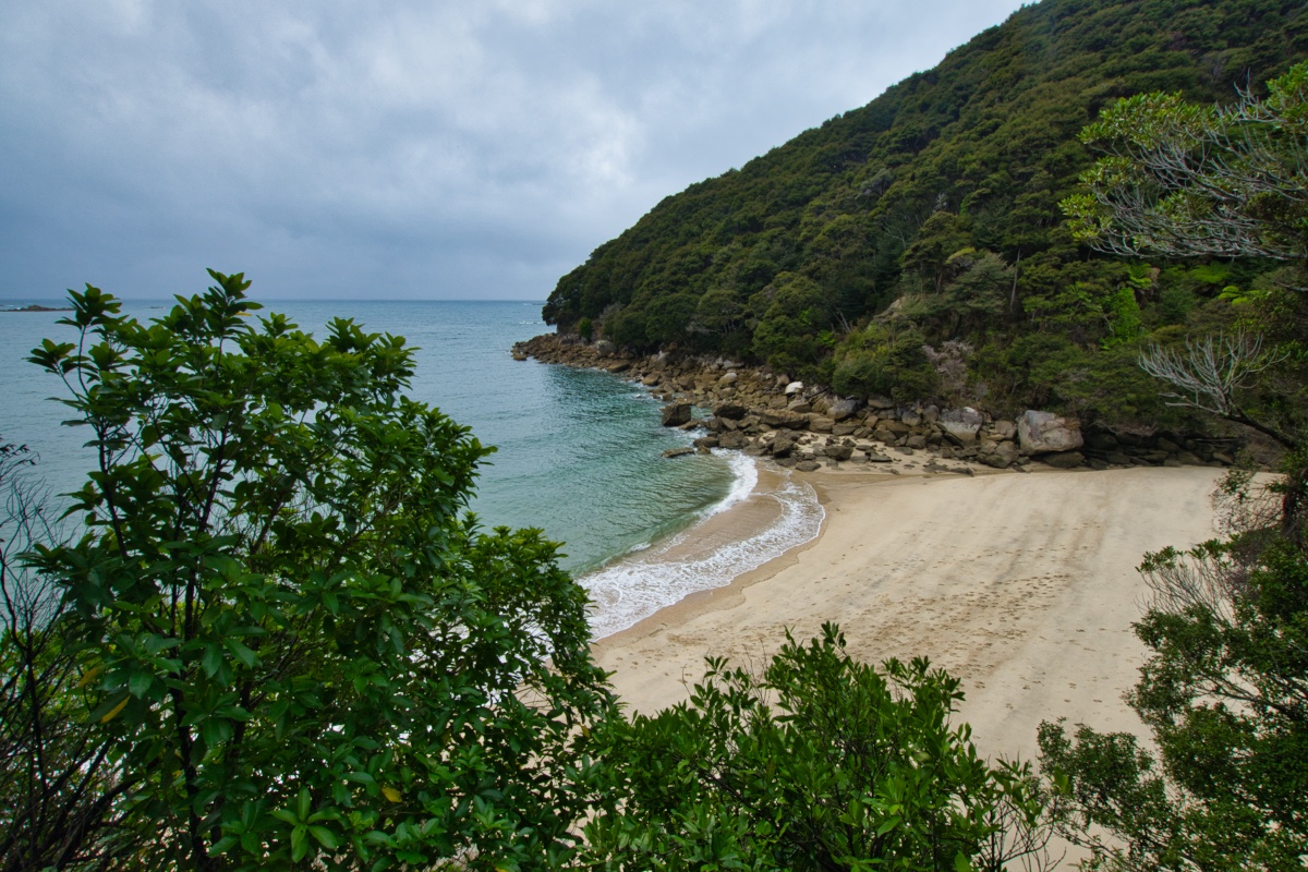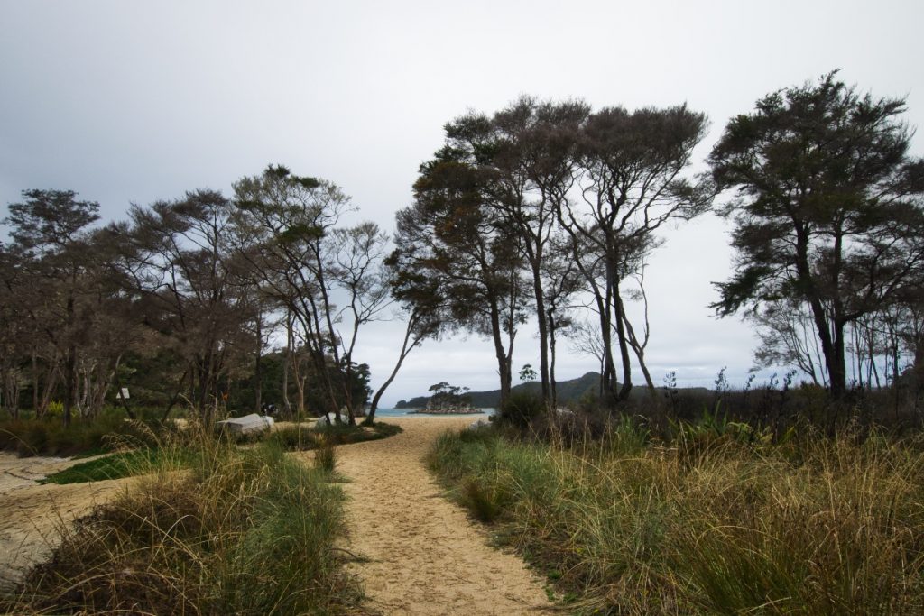 Ich war froh, als nach einer Weile die Torrent Bay in Sicht kam. Hier ging es wieder bergab hinunter zum Strand.