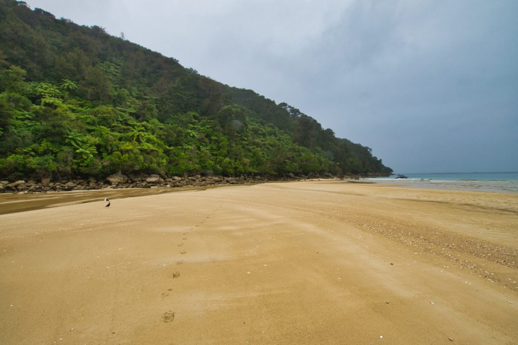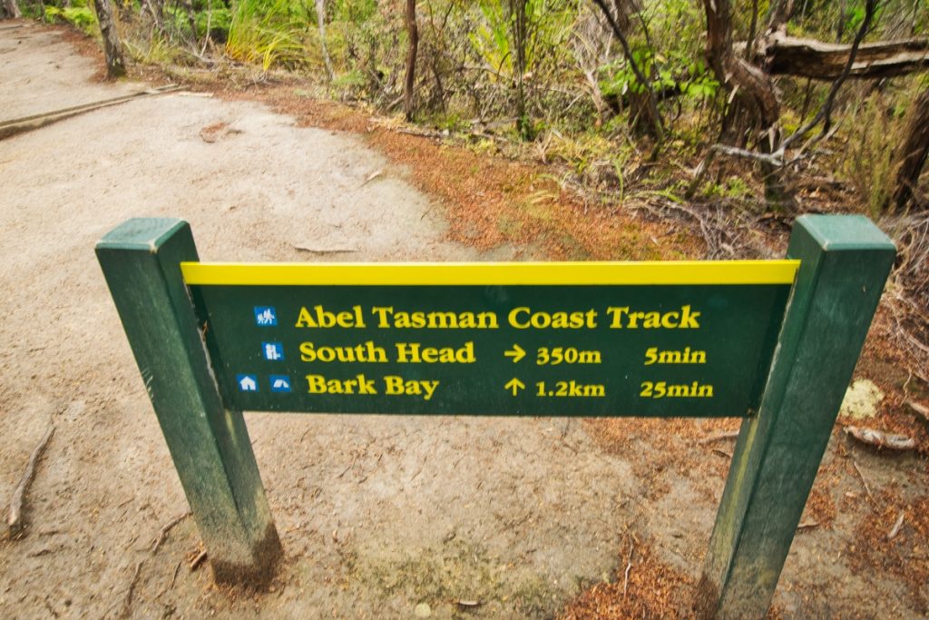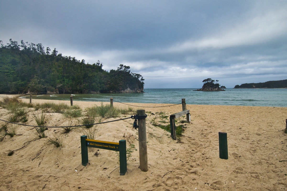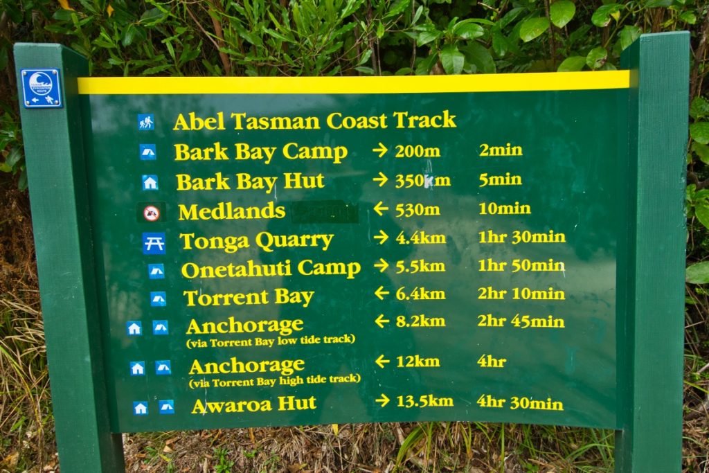 In Bark Bay wies ein Schild darauf hin, dass man für den Abschnitt des Abel Tasman Track bis Anchorage 4 Stunden brauchen sollte. Da es erst 10:30 Uhr war und ich das Boot zurück von Anchorage um 16:00 Uhr gebucht hatte, hatte ich mehr als genug Zeit – dachte ich zumindest zu diesem Zeitpunkt.