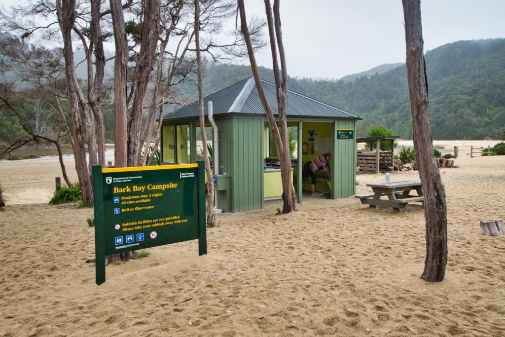 Barfuß lief ich den Strand entlang bis zum Bark Bay Campingplatz, einer der wenigen Möglichkeiten, im Nationalpark zu übernachten. Dort gab es neben einem Kitchen Shelter und Toiletten zum Glück auch einen Wasserhahn, an dem ich mir den Sand von den Füßen waschen konnte, um wieder meine Wanderschuhe anziehen zu können.