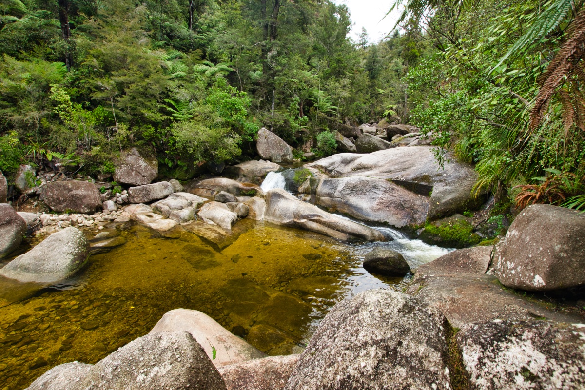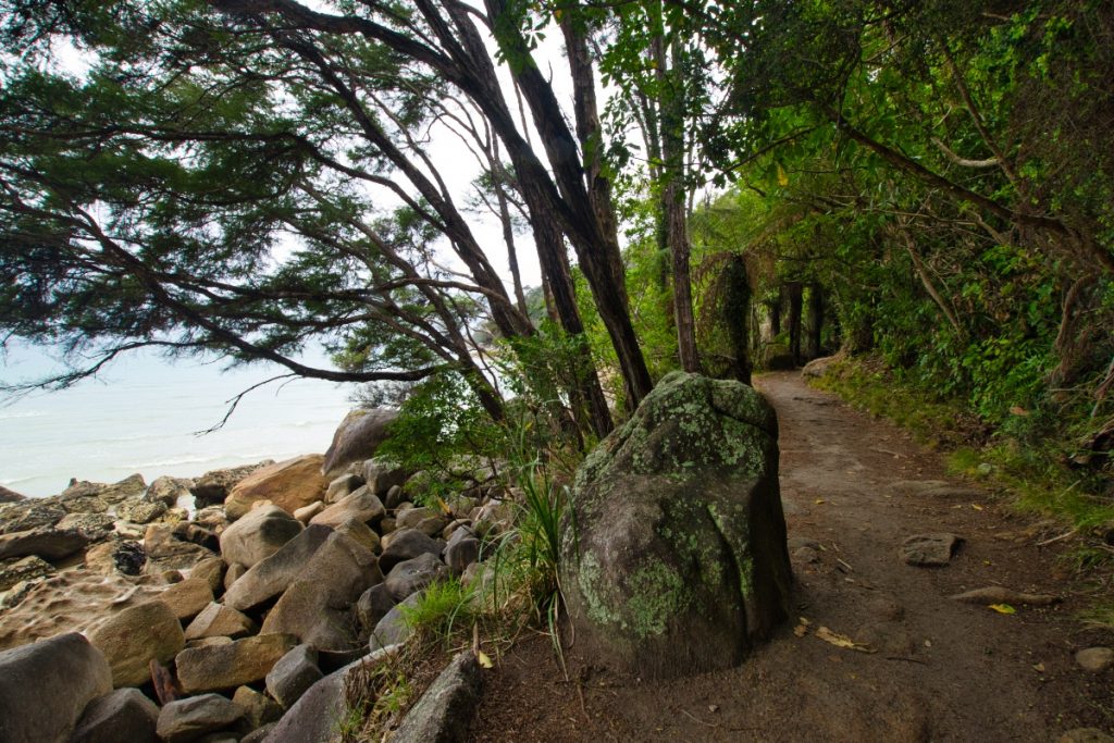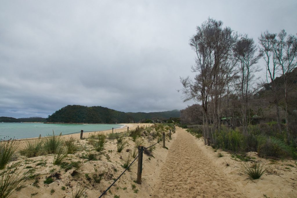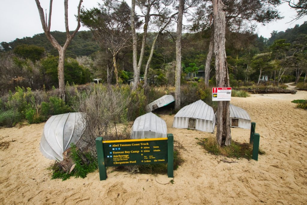 In Torrent Bay gibt es ein kleines Dorf – mitten im Nationalpark. Die Ferienhäuser hier wurden schon gebaut, bevor das Gebiet zum Nationalpark erklärt wurde und danach durften die Eigentümer ihre Häuser auch behalten. Teilweise ist das Land in Torrent Bay daher Privateigentum und man darf nur auf dem vorgeschriebenen Pfad durch die Bucht laufen.