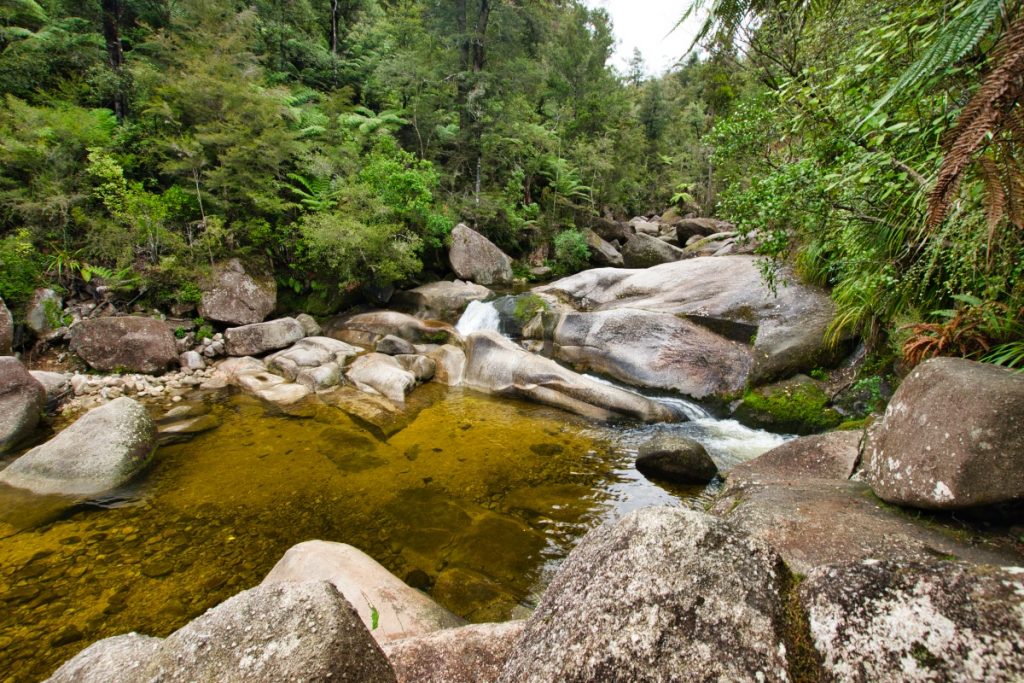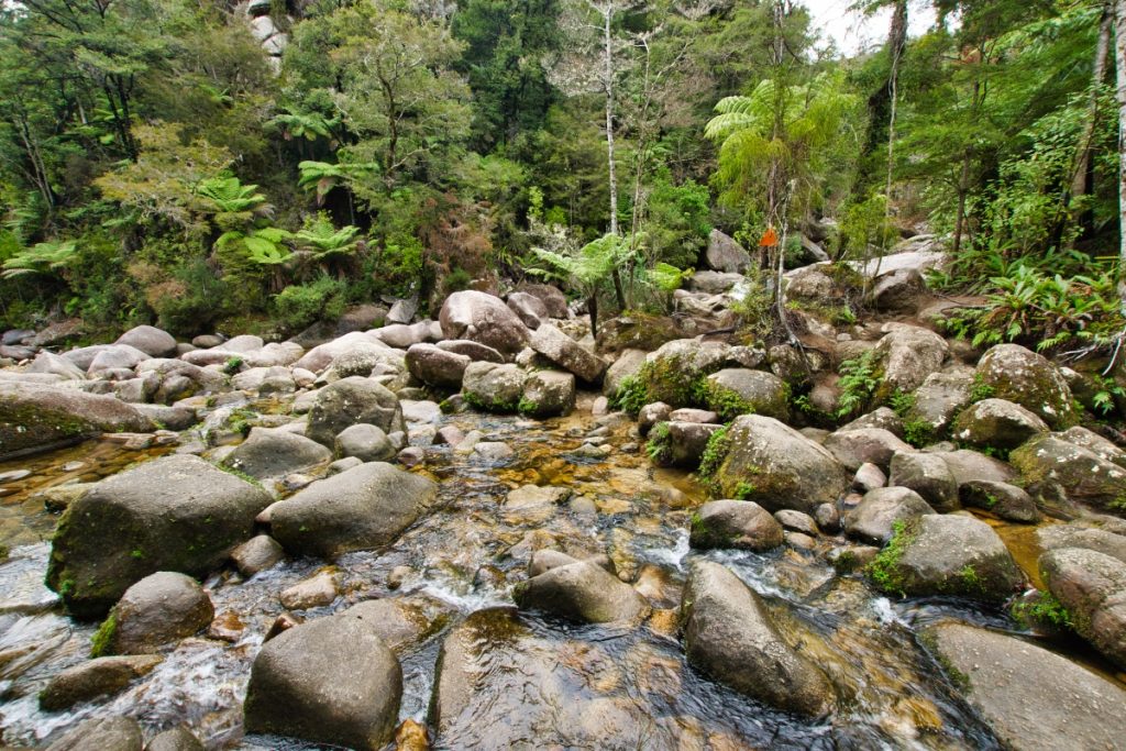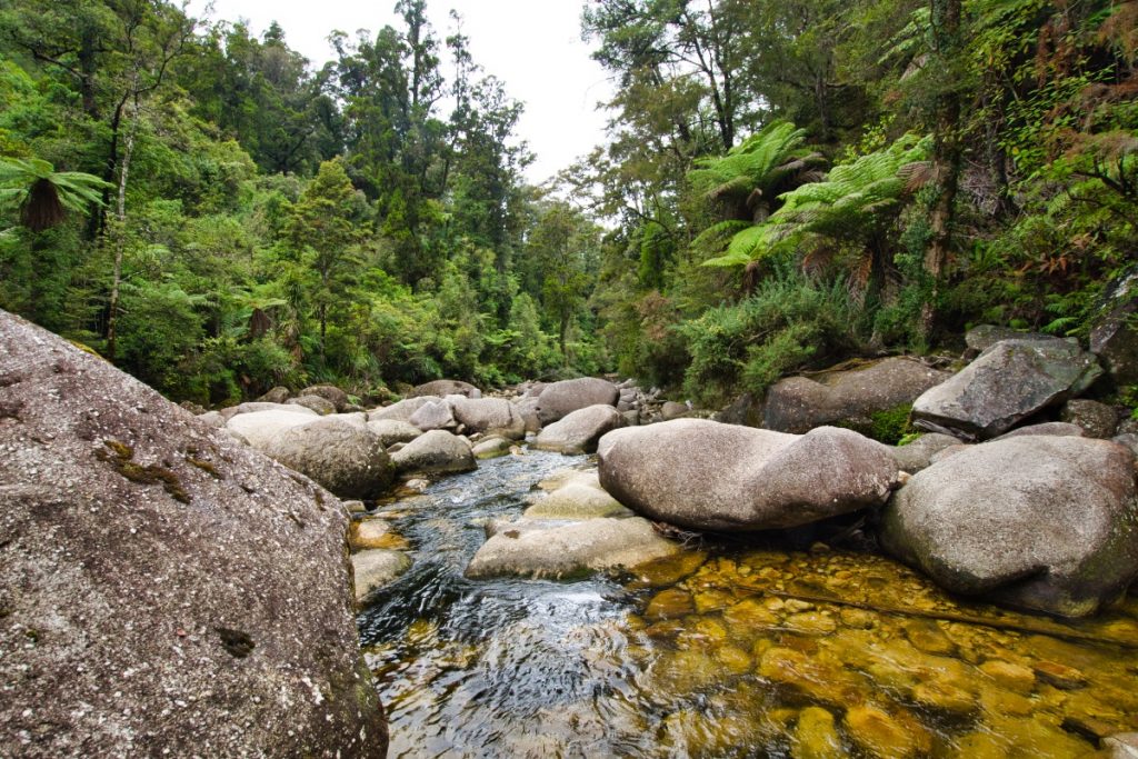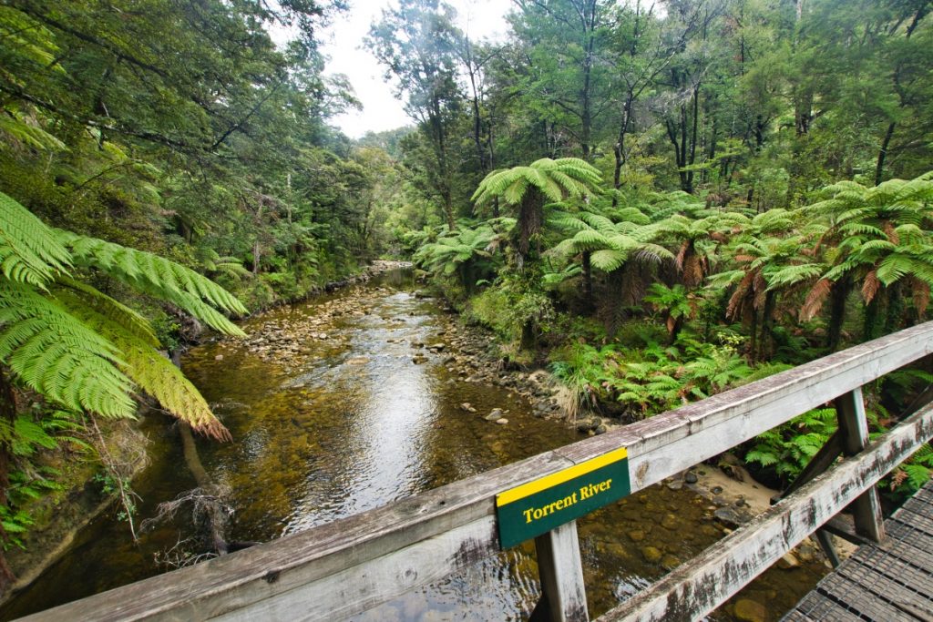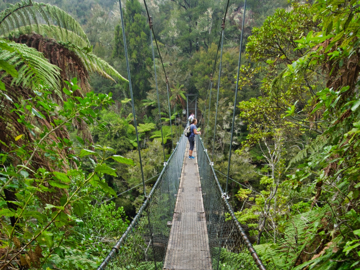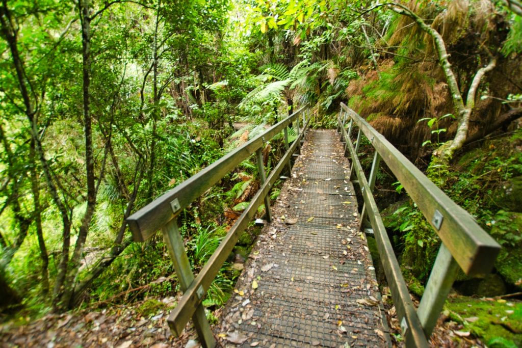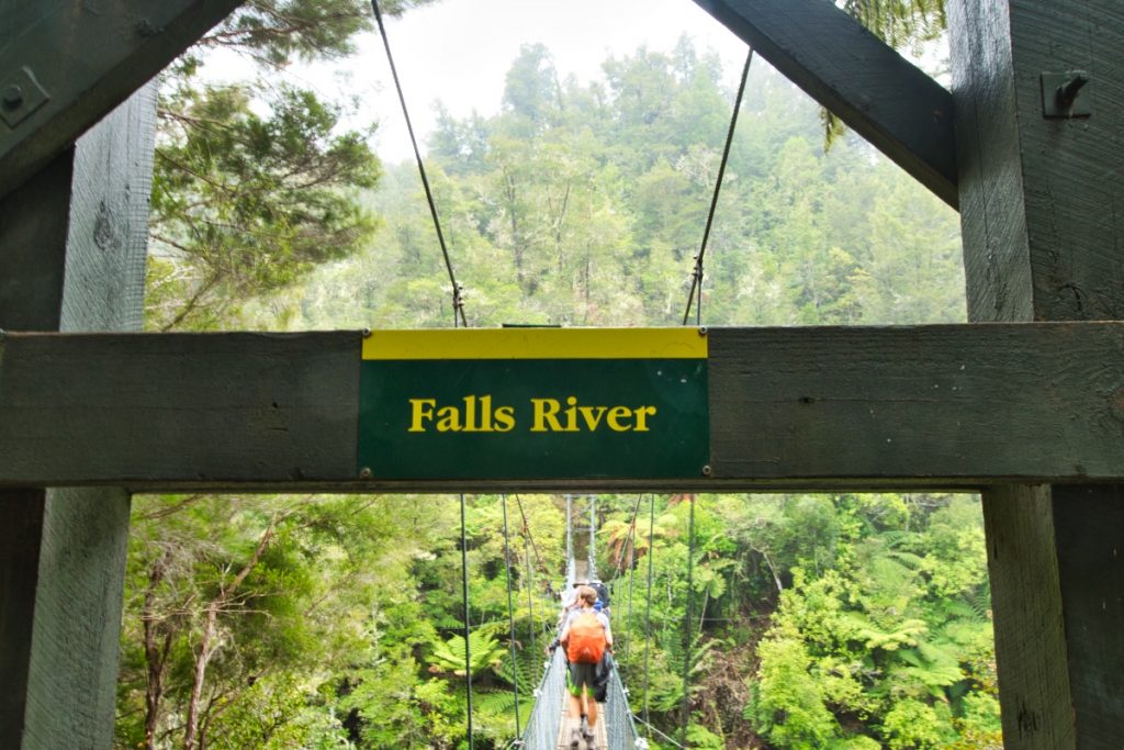 Nachdem ich wieder auf den Hauptpfad zurückgekehrt war, ging die Wanderung weiter mitten durch den Regenwald, bis ich die Falls River Swingbridge erreicht habe.