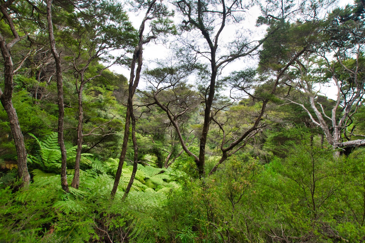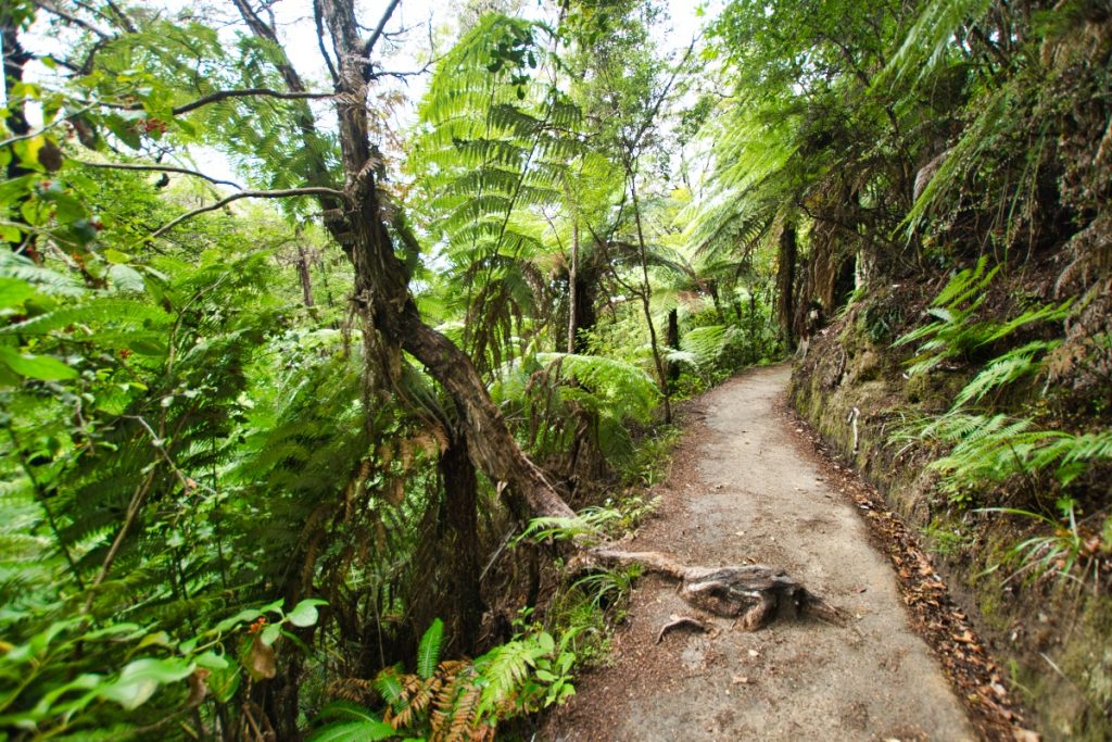 Hinter dem Medlands Beach wendete sich der Pfad von der Küste ab und verlief eine Weile mitten durch den Regenwald.