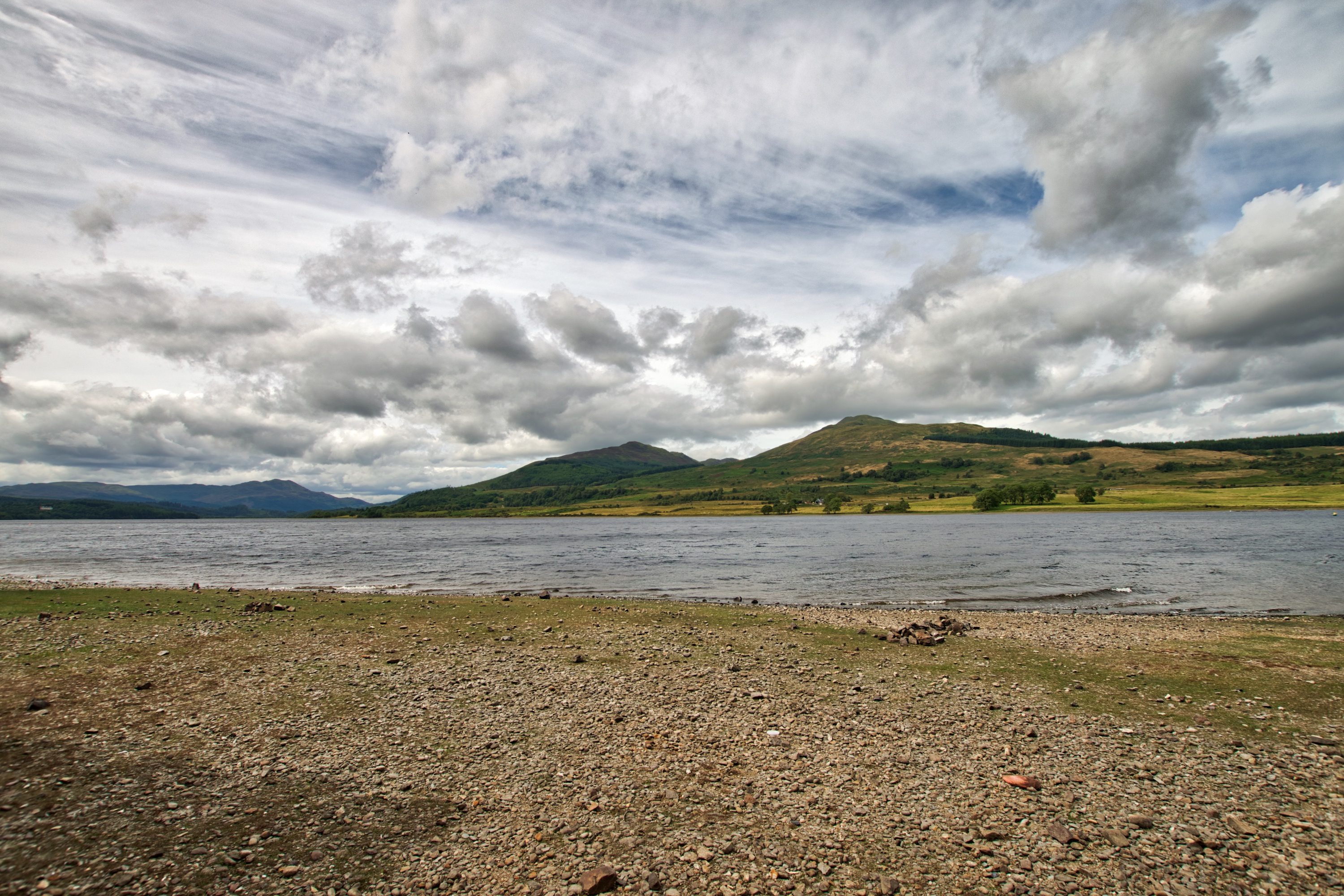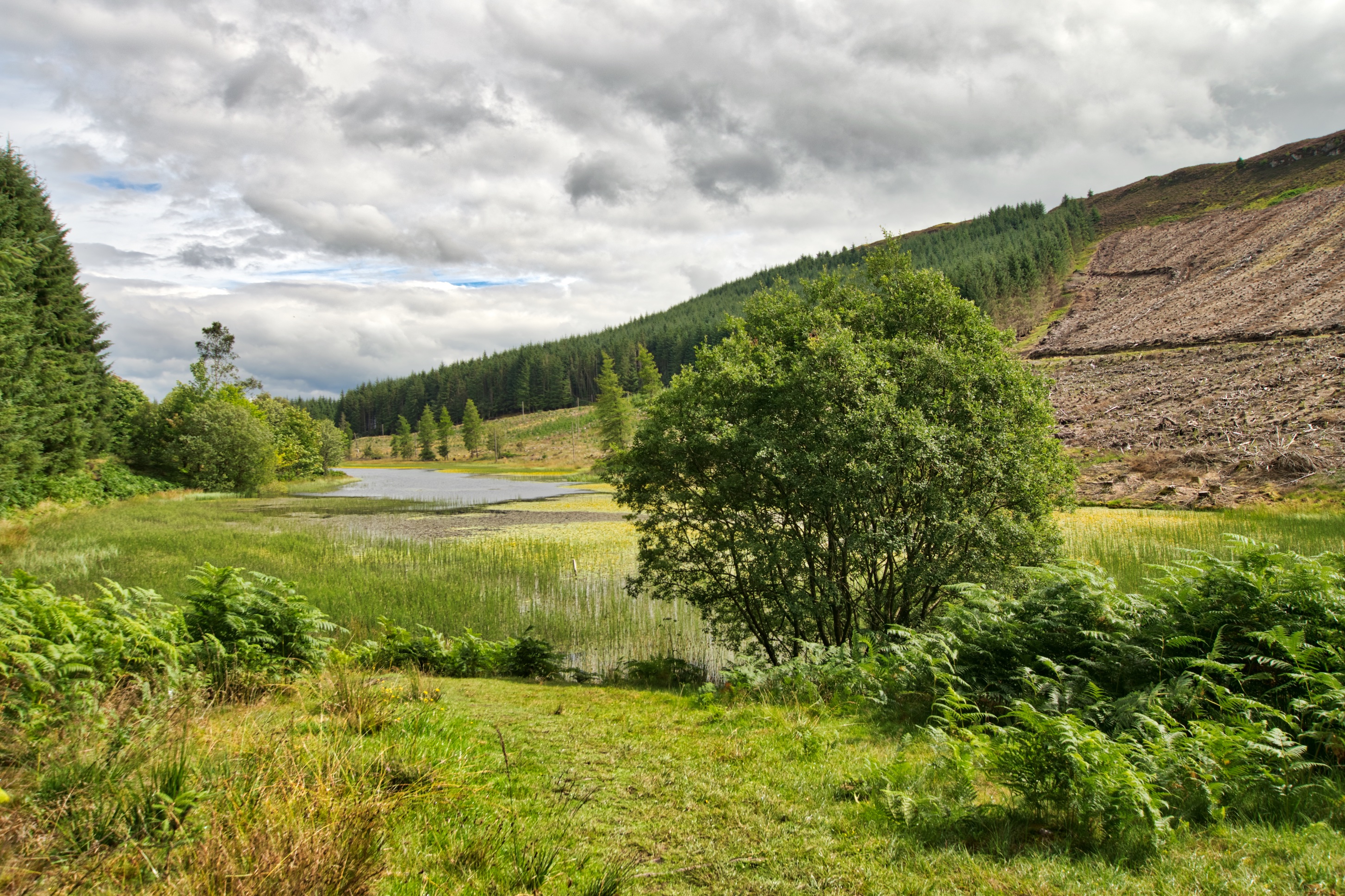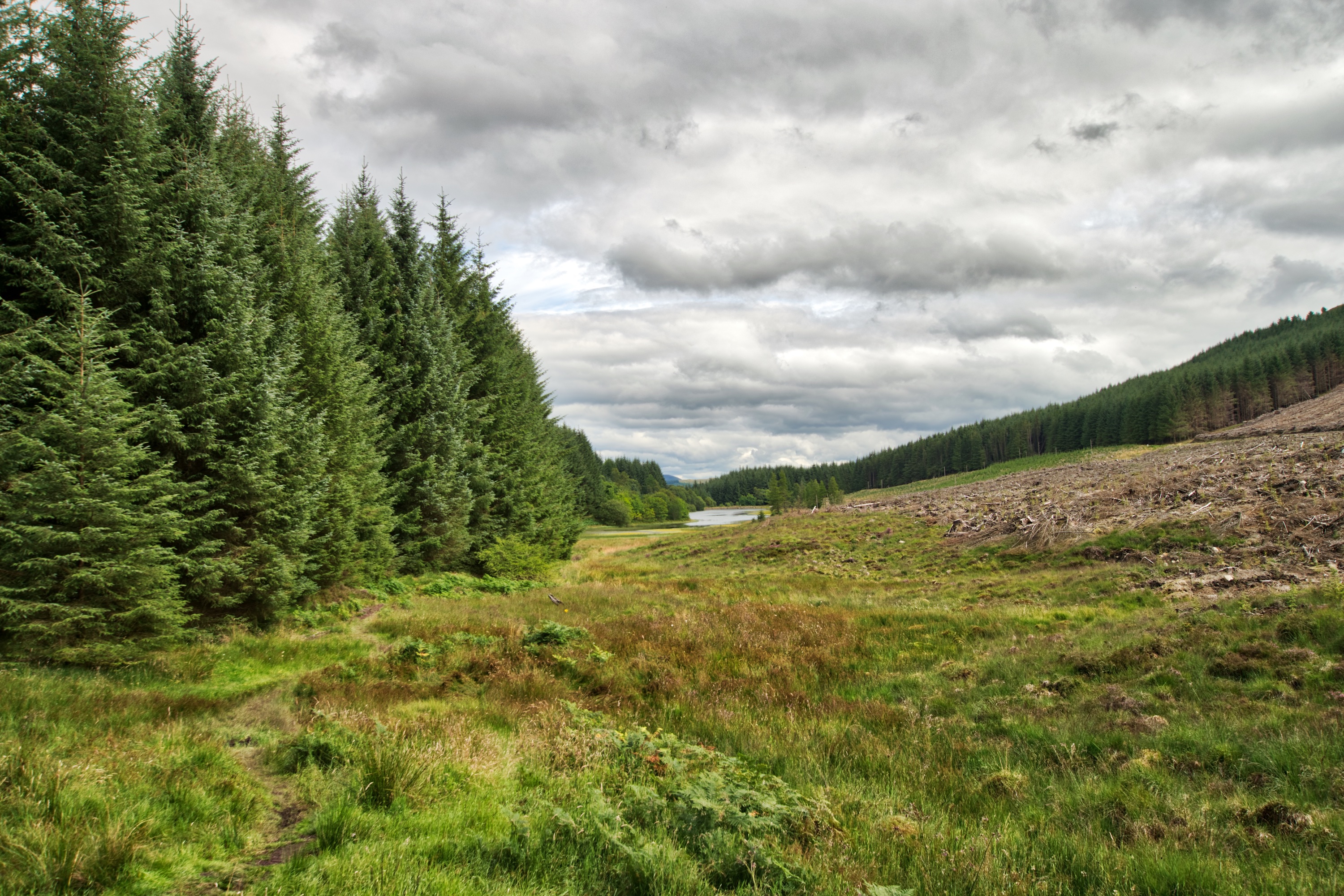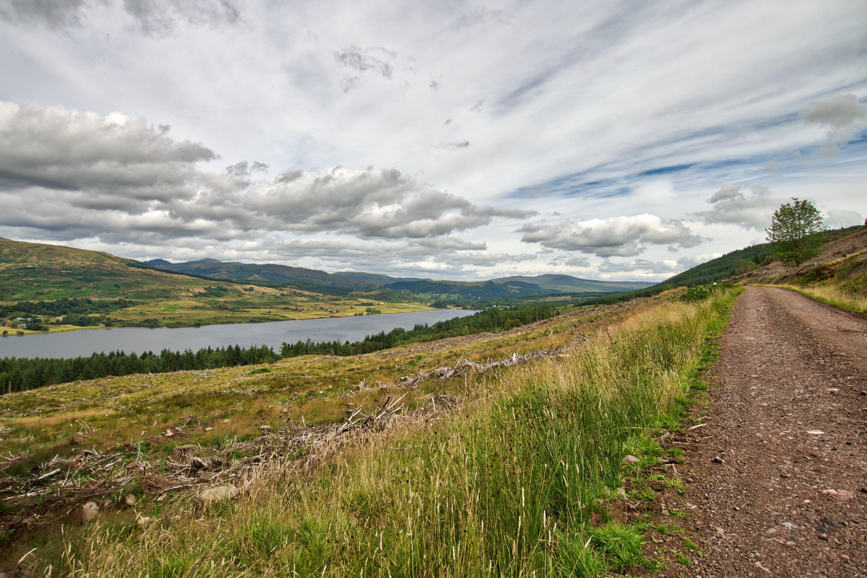 Und es war auch gut so! Denn da wo wir laut Wanderführer noch durch Wald hätten laufen sollen und es nur gelegentlich einen Blick auf Loch Venachar hätte geben sollen, war jetzt alles abgeholzt und wir hatten einen fantastischen Blick auf das Loch und die Berge rundherum. Zum Glück war Katharina dagegen vom Weg abzuweichen 🙂