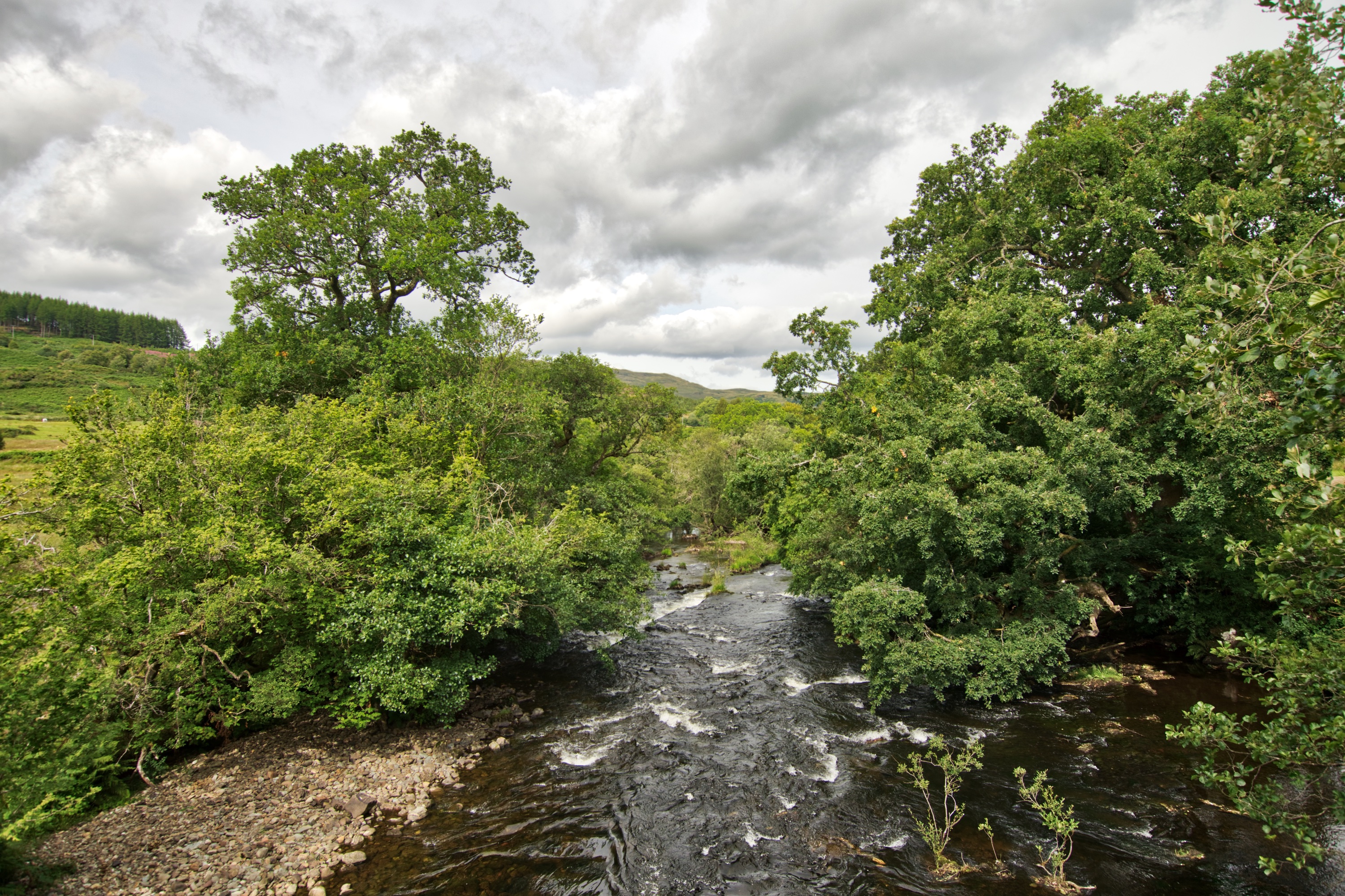 Im Wanderführer stand, dass wir noch an der Gartchonzie Bridge vorbei kommen würden, einer viel gefilmten Brücke. Leider war es unmöglich, ein Foto von der Brücke zu bekommen, da man an der einen Seite nicht runter ans Ufer konnte und auf der anderen Seite dichte Bäume standen. Also haben wir nur ein Bild von der Brücke runter auf den Fluss machen können.