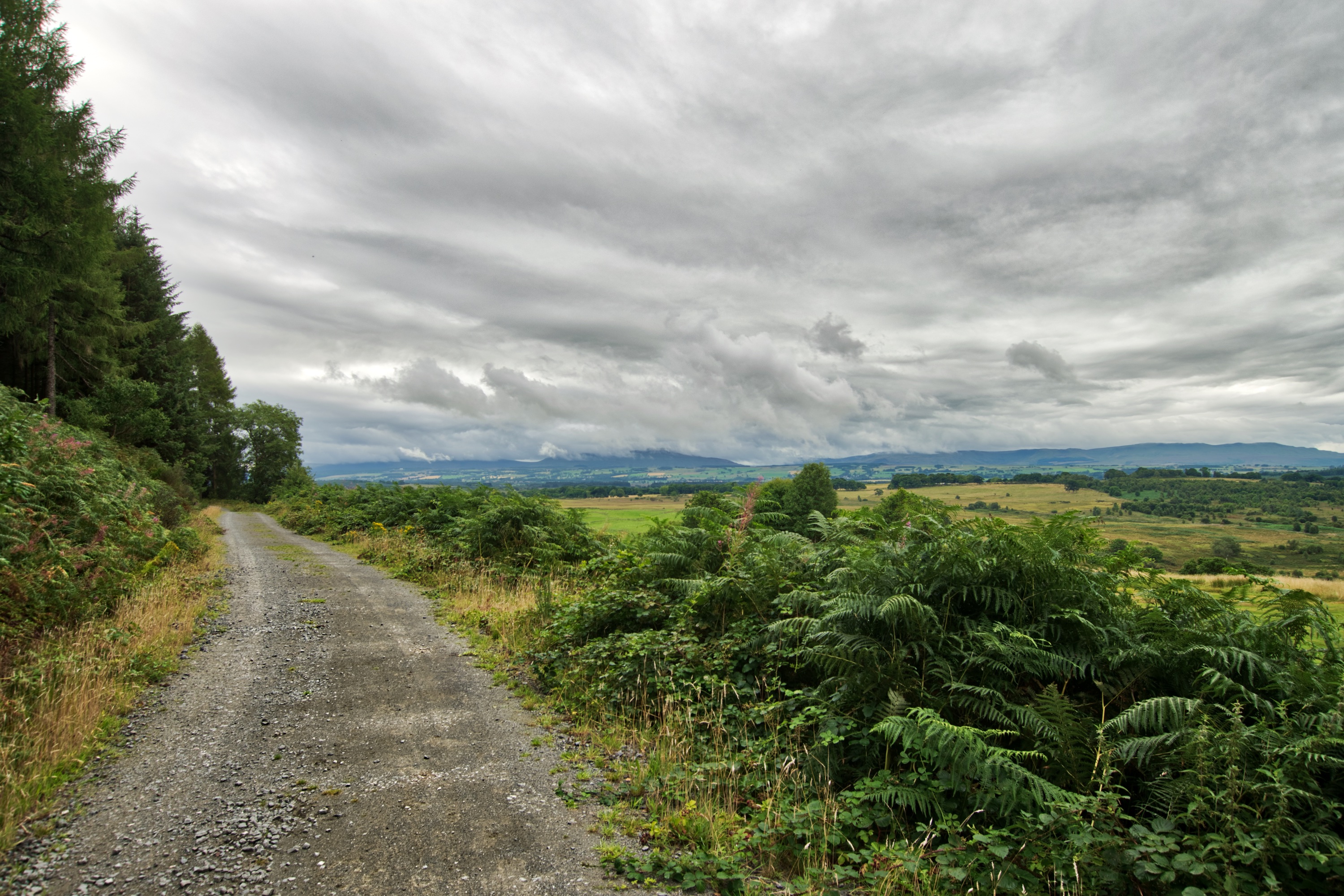 Vom Co-op haben wir eine kleine Abkürzung genommen und sind auf der Hauptstraße ortsauswärts gelaufen, bis wir beim Medical Center links abbiegen mussten. Hier haben wir erneut die anderen Deutschen getroffen, die von nun an ein Stückchen hinter uns liefen. Hinter Aberfoyle ging es zunächst auf einer Schotterstraße immer den Hügel hoch.
