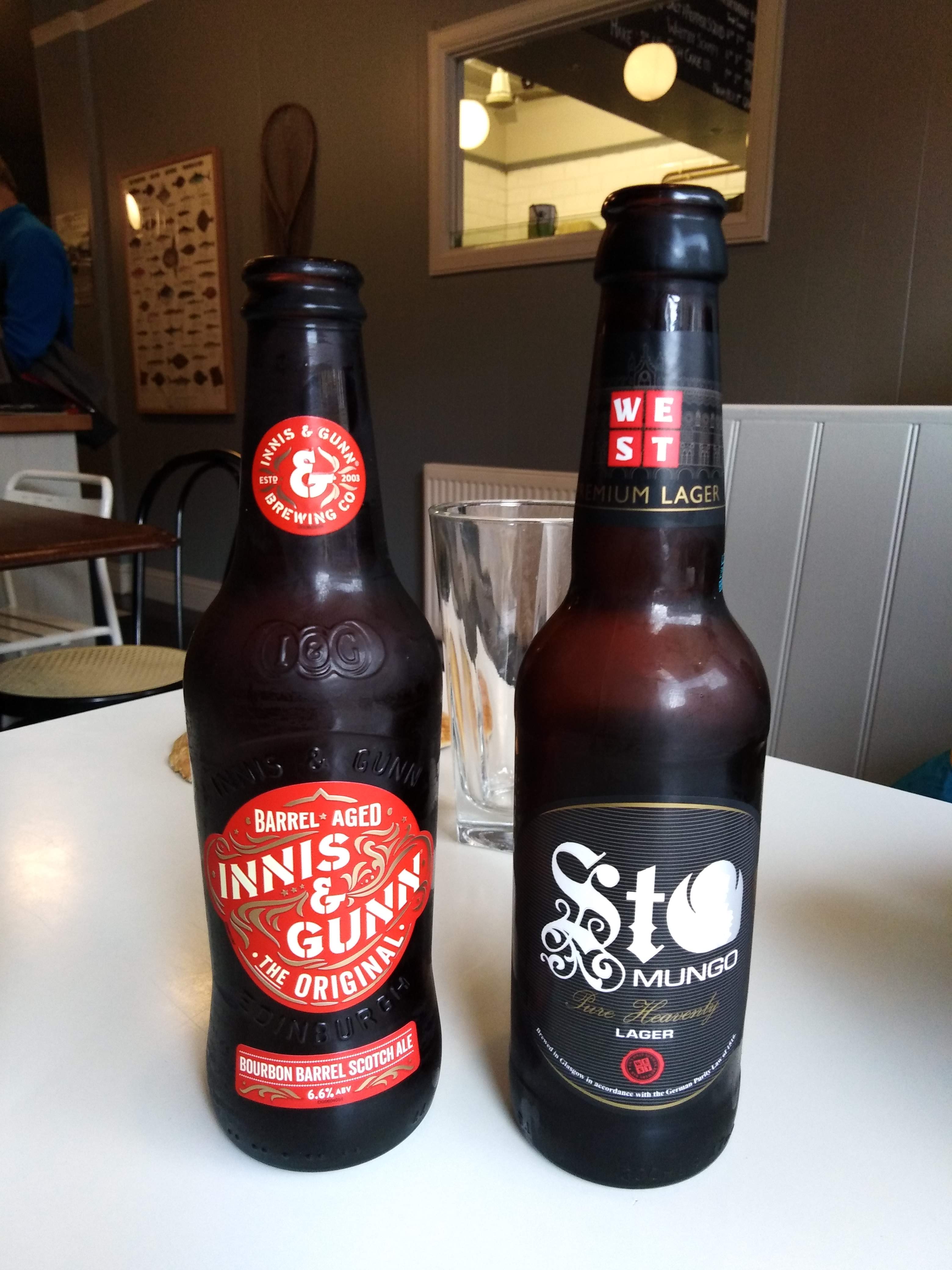 Wir haben beide Fish & Chips gegessen und unser Beer Tasting vom Vortag mit zwei Flaschenbieren fortgesetzt. Beide sehr viel besser als die sechs Biere in Aberfoyle.