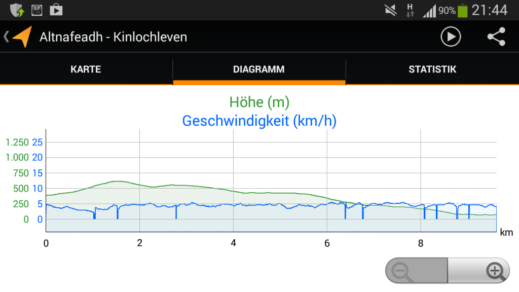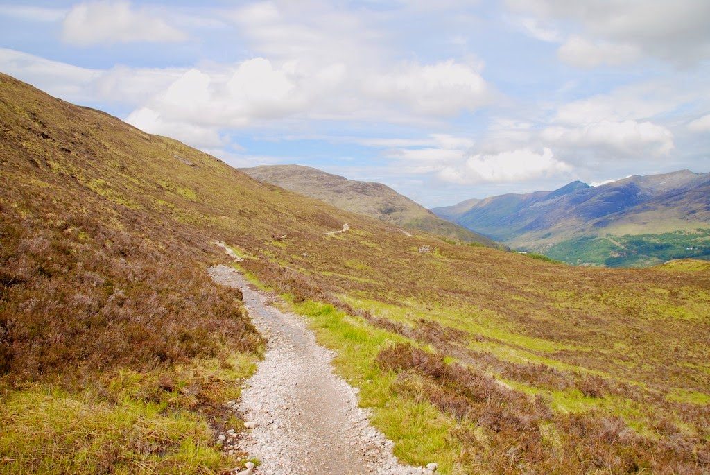 Irgendwann ging es dann links ab auf einen breiteren, befestigten Weg, der steil nach unten ins Tal Richtung Kinlochleven führte.