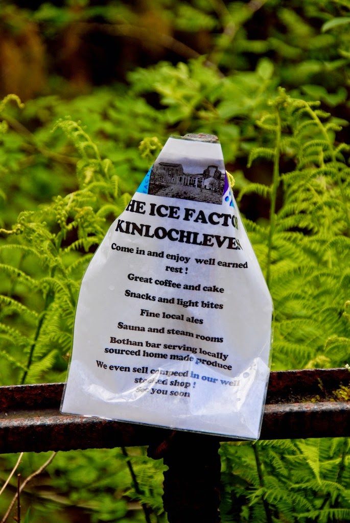 Kurz bevor wir Kinlochleven erreichten machte „The Ice Factor“ am Wegesrand schon Werbung für Kaffee und Kuchen, lokale Biere und Compeed-Blasenpflaster.