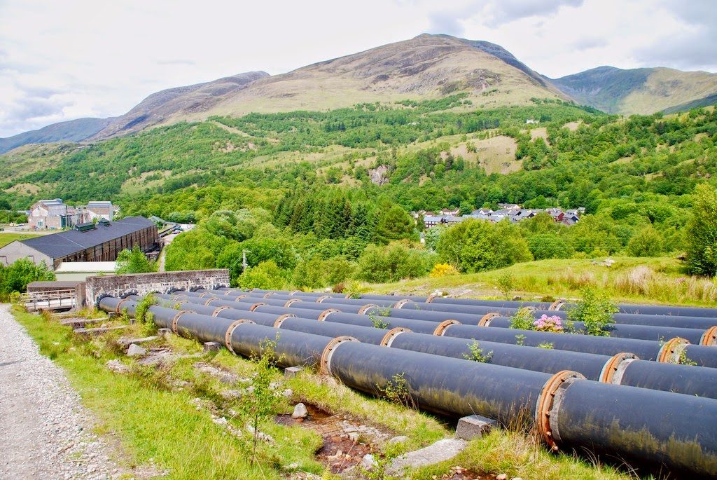 Unterwegs kamen wir auch noch an den großen Rohren vorbei, die früher Wasser aus dem Blackwater Reservoir zur Aluminiumhütte von Kinlochleven leiteten.