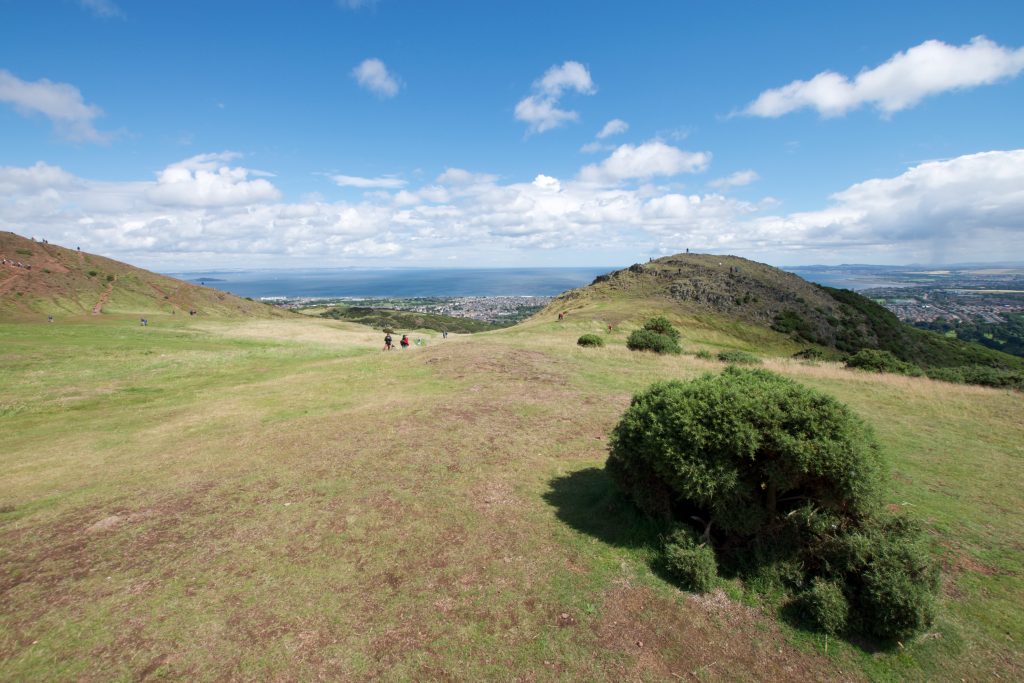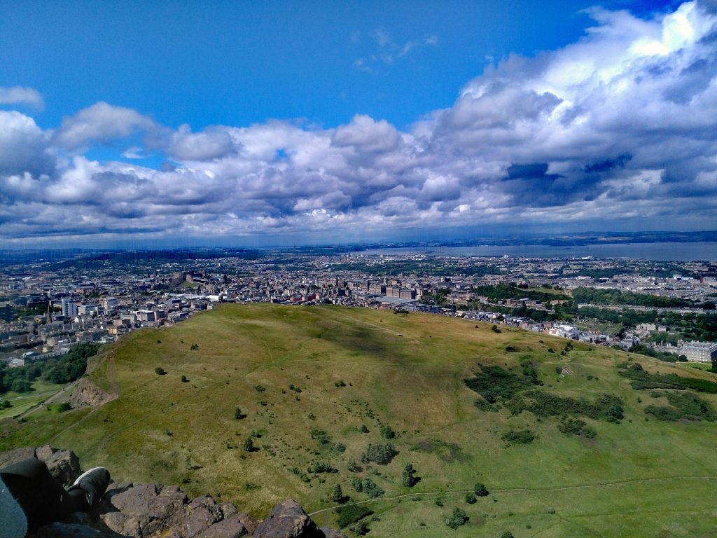 Am Ende der Royal Mile stehen der Palace of Holyroodhouse und das schottische Parlament. Wir sind aber zunächst an beidem vorbeigelaufen und haben den Aufstieg zum Arthur’s Seat begonnen. Wir hatten noch im Hostel gefragt, was für Schuhe wir anziehen sollten und man hatte uns gesagt, dass wir keine Wanderschuhe brauchen würden, wenn wir den „normalen“ Weg nach oben nehmen würden. Leider haben wir nicht den „main path“ genommen (war schlecht ausgeschildert) und so war unser Aufstieg in Teilen recht steil und der Weg mit vielen losen Steinen übersät. Man musste also ganz schön aufpassen, nicht auszurutschen. Aber für die Ausblicke auf Edinburgh und das Umland, die sich schon nach den ersten paar Metern eröffnet haben, hat es sich auf jeden Fall gelohnt.