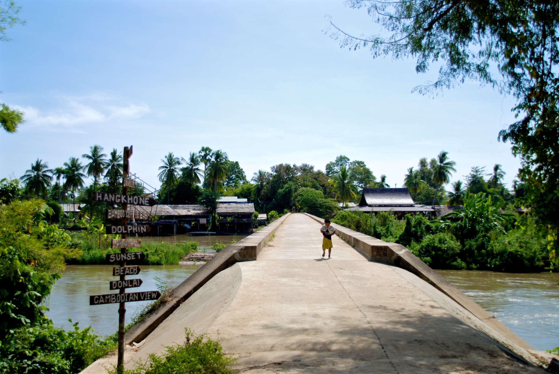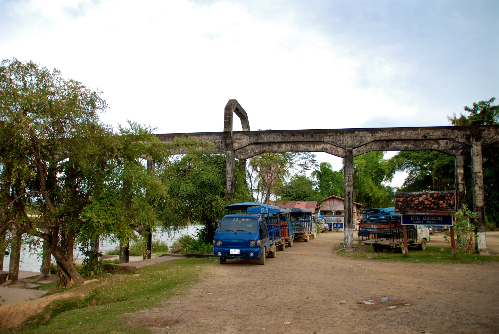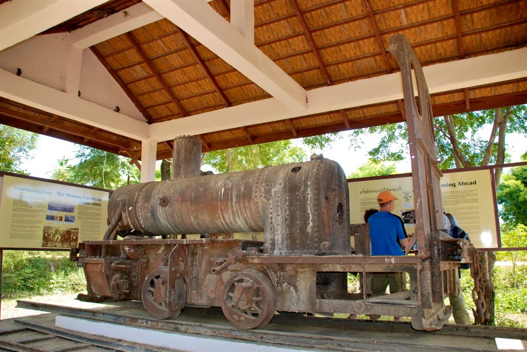 Auf Don Khon habe ich zunächst eine alte französische Lok angesehen. Es gab auch einige sehr informative Tafeln, auf denen erklärt wurde, warum die Franzosen auf den Inseln eine Eisenbahnlinie gebaut haben. Ursprünglich diente die Eisenbahn dem Transport mehrerer Kanonenboote vorbei an den nicht schiffbaren Wasserfällen an der heutigen Grenze zwischen Laos und Kambodscha. Die Franzosen sahen für ihre Kolonien eine Bedrohung sowohl durch die Briten, die Burma in ihrer Hand hatten, als auch durch China. Mit den Kanonenbooten konnten sie den Mekong oberhalb der 4000 Inseln bis nach Luang Prabang kontrollieren. Für den Handel war die Eisenbahn hingegen nie von größerer Bedeutung und verlor sie gänzlich, als auf dem Festland eine Straßenverbindung zwischen dem Süden des heutigen Laos und Vientiane fertiggestellt wurde.