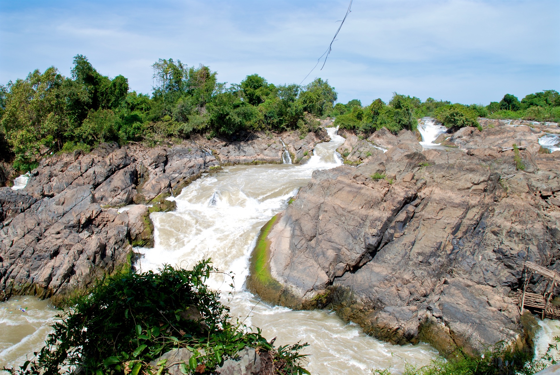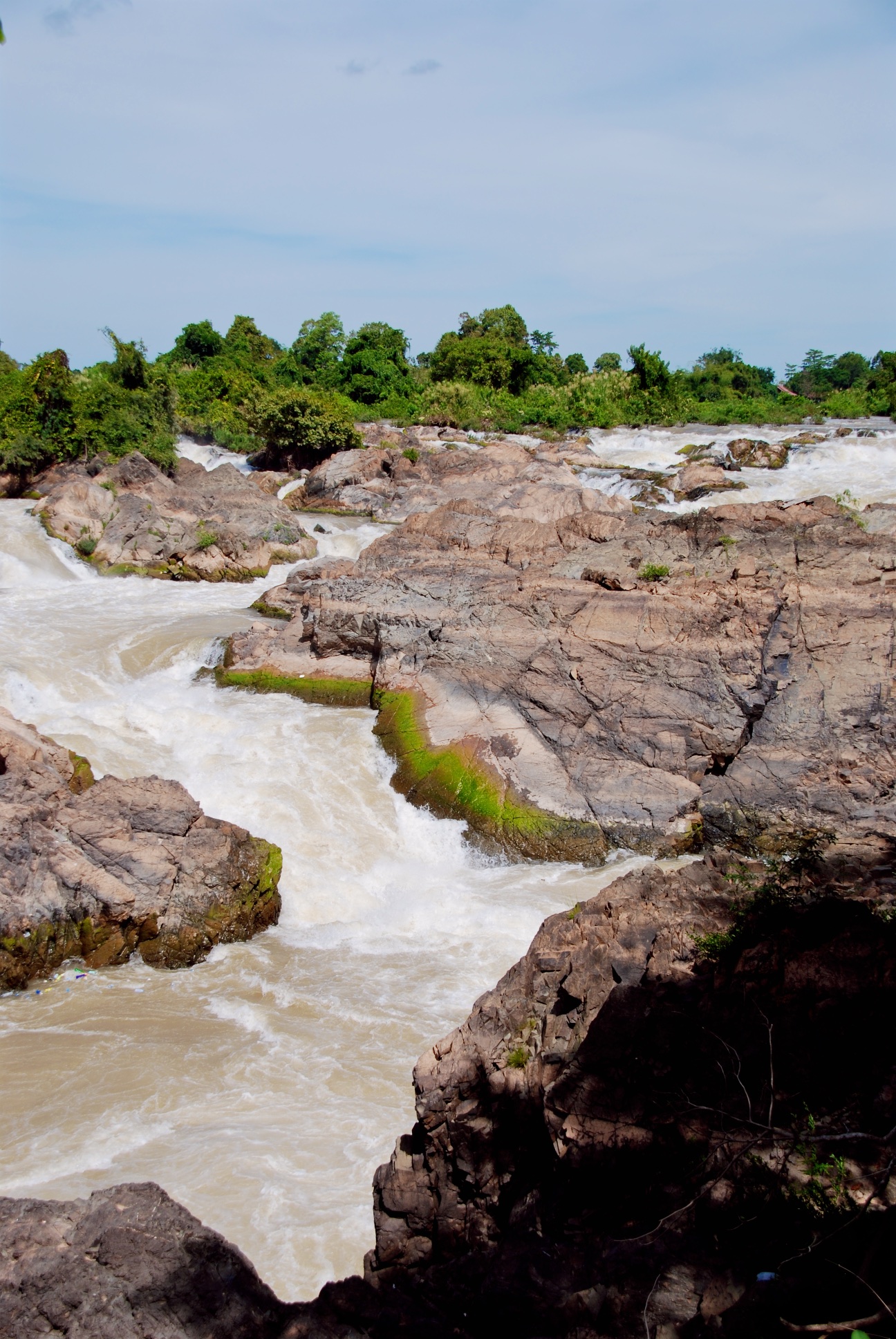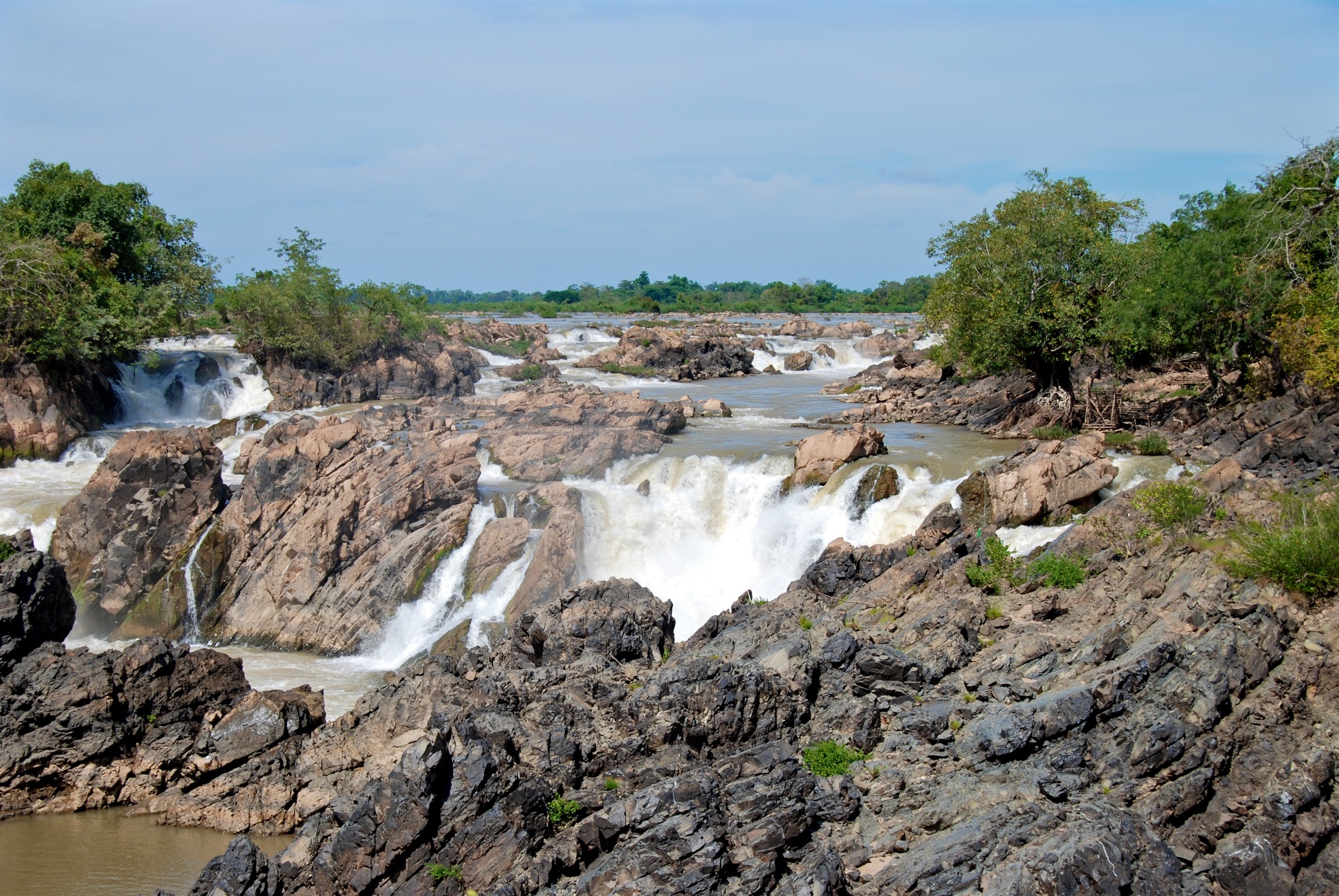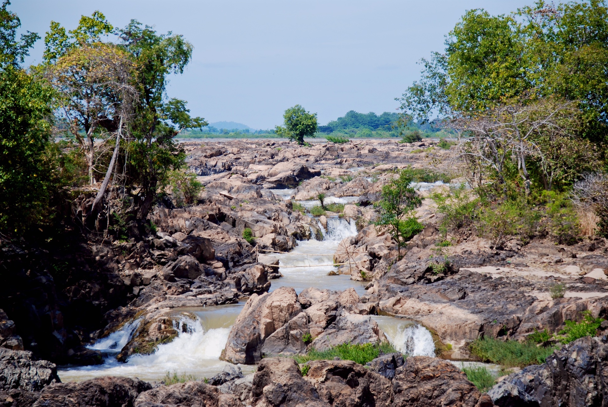 Die Wasserfälle selbst sind nicht besonders hoch, aber dafür umso breiter und recht beeindruckend. Es gibt einige Aussichtspunkte mit Bänken, die zum Verweilen einladen. Ich bin allerdings nicht allzu lange geblieben, da es mittlerweile Mittag war und ich nach einem Restaurant am Mekong suchen wollte, wo ich für ein paar Stunden der Mittagshitze entkommen konnte. Ich habe mich dann für das Restaurant des Hotel Sala Done Khone entschieden. Direkt am Fluss mit schönem Blick rüber nach Don Det. Das Essen war gut, aber sehr scharf, der Service etwas langsam, die Internetverbindung umso schneller. Daher habe ich die Gelegenheit genutzt und alle noch fehlenden Fotos hochgeladen.