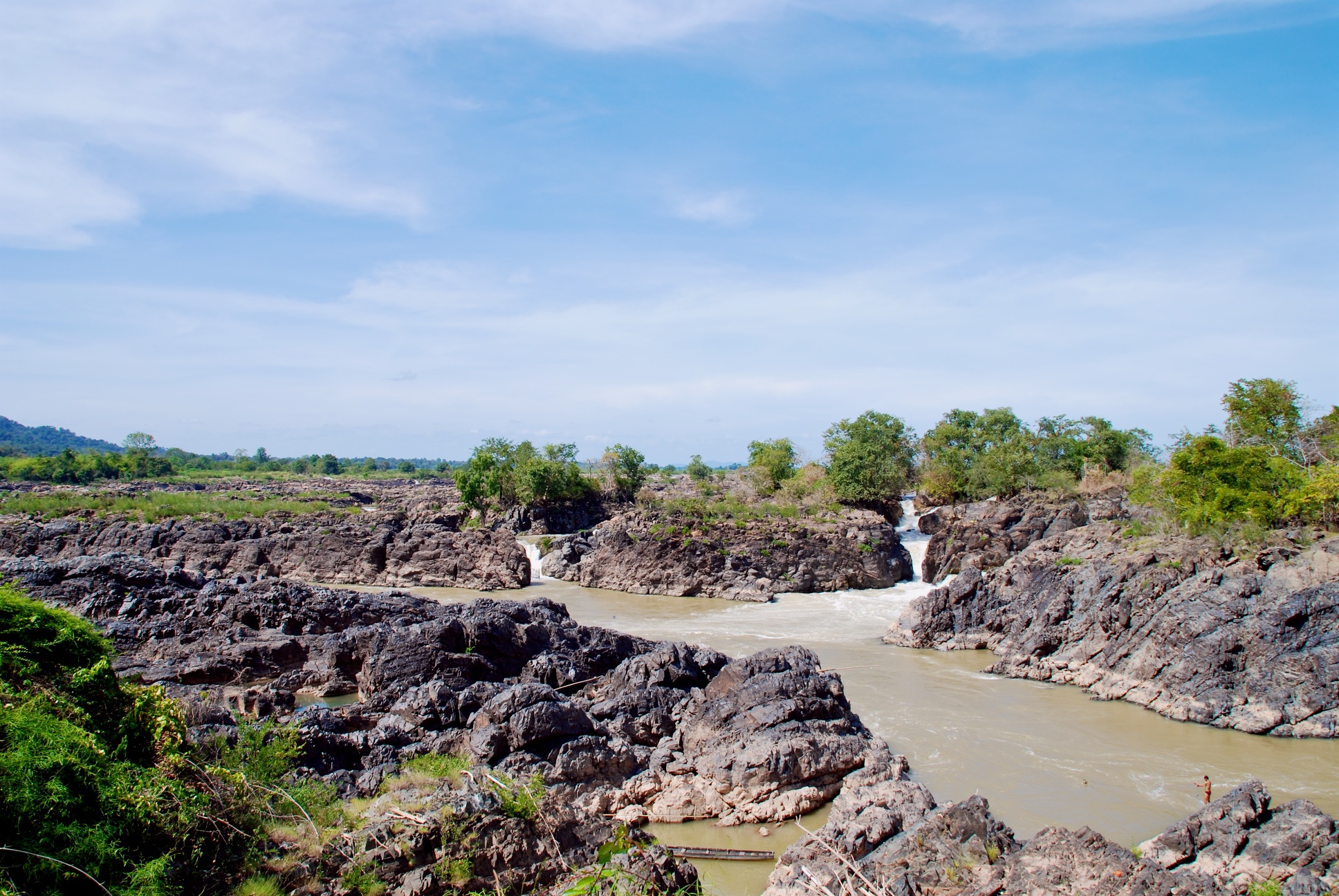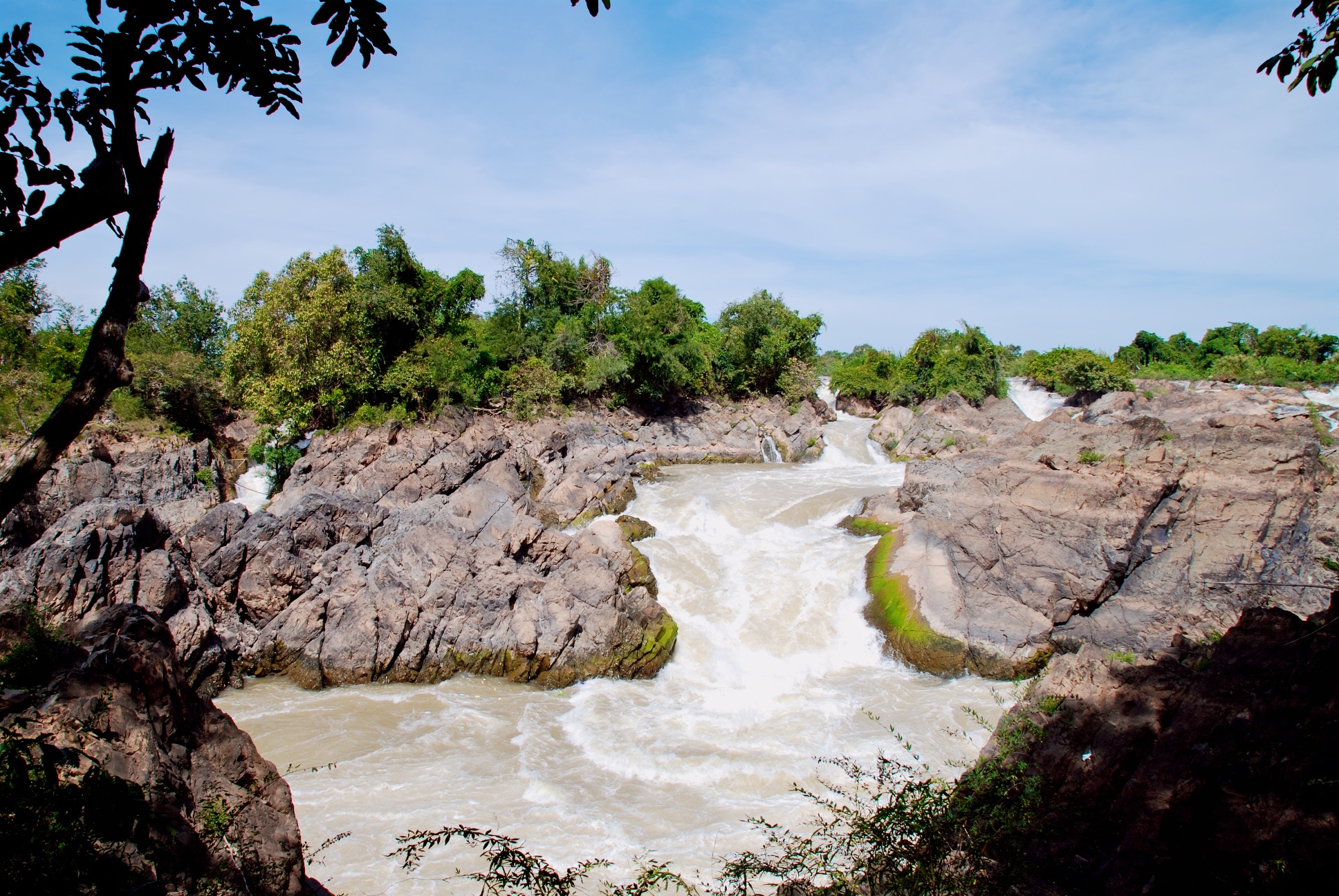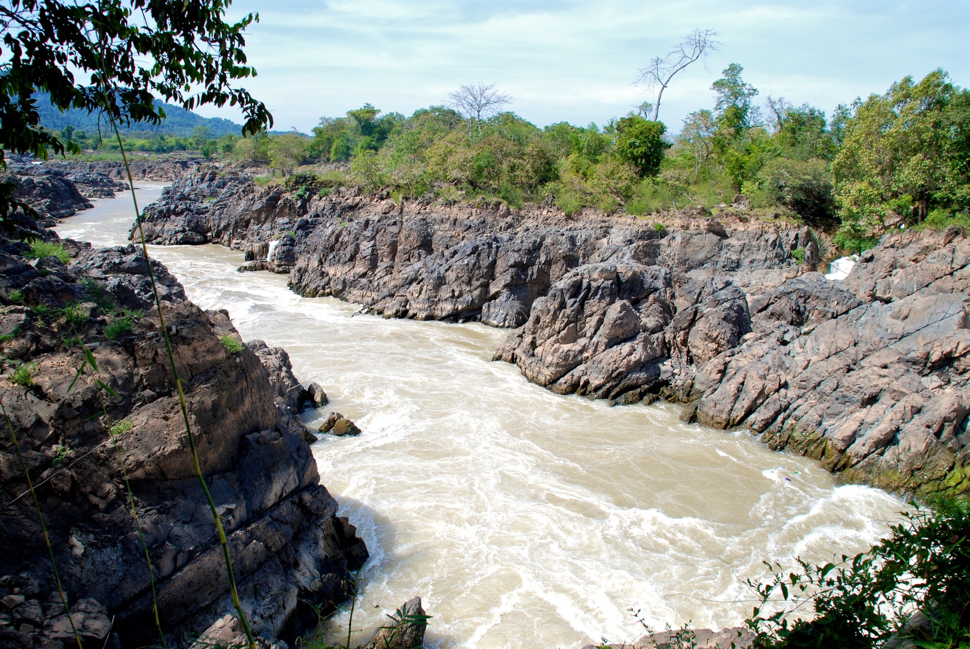 Die Wasserfälle selbst sind nicht besonders hoch, aber dafür umso breiter und recht beeindruckend. Es gibt einige Aussichtspunkte mit Bänken, die zum Verweilen einladen. Ich bin allerdings nicht allzu lange geblieben, da es mittlerweile Mittag war und ich nach einem Restaurant am Mekong suchen wollte, wo ich für ein paar Stunden der Mittagshitze entkommen konnte. Ich habe mich dann für das Restaurant des Hotel Sala Done Khone entschieden. Direkt am Fluss mit schönem Blick rüber nach Don Det. Das Essen war gut, aber sehr scharf, der Service etwas langsam, die Internetverbindung umso schneller. Daher habe ich die Gelegenheit genutzt und alle noch fehlenden Fotos hochgeladen.