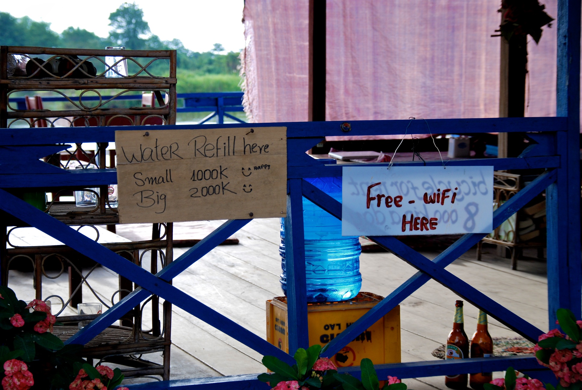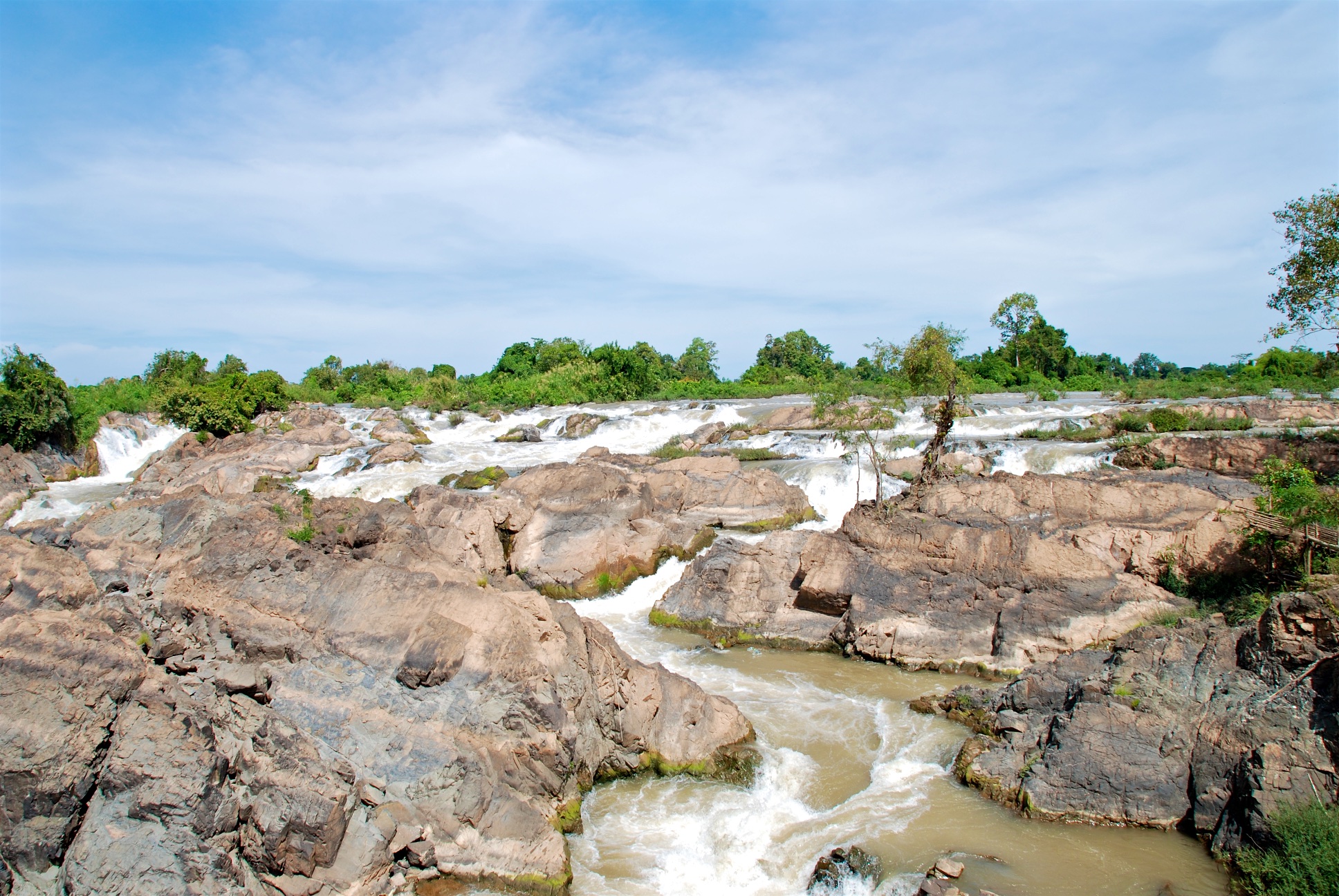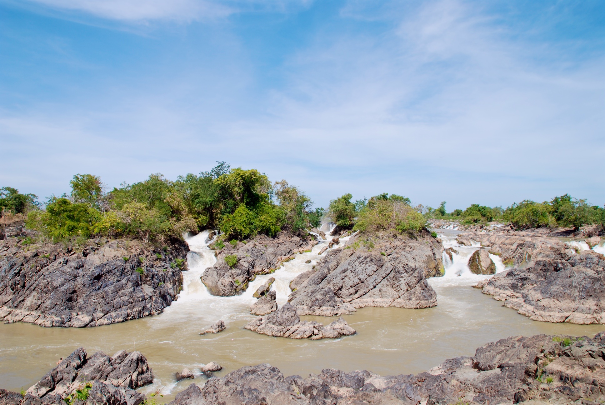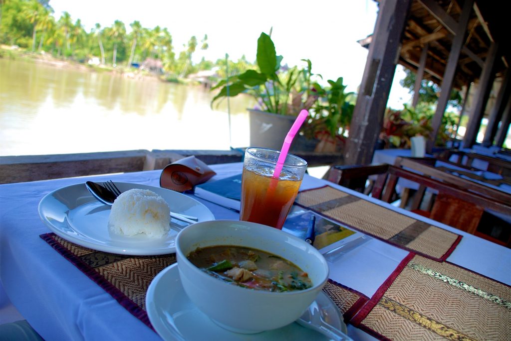 Die Wasserfälle selbst sind nicht besonders hoch, aber dafür umso breiter und recht beeindruckend. Es gibt einige Aussichtspunkte mit Bänken, die zum Verweilen einladen. Ich bin allerdings nicht allzu lange geblieben, da es mittlerweile Mittag war und ich nach einem Restaurant am Mekong suchen wollte, wo ich für ein paar Stunden der Mittagshitze entkommen konnte. Ich habe mich dann für das Restaurant des Hotel Sala Done Khone entschieden. Direkt am Fluss mit schönem Blick rüber nach Don Det. Das Essen war gut, aber sehr scharf, der Service etwas langsam, die Internetverbindung umso schneller. Daher habe ich die Gelegenheit genutzt und alle noch fehlenden Fotos hochgeladen.