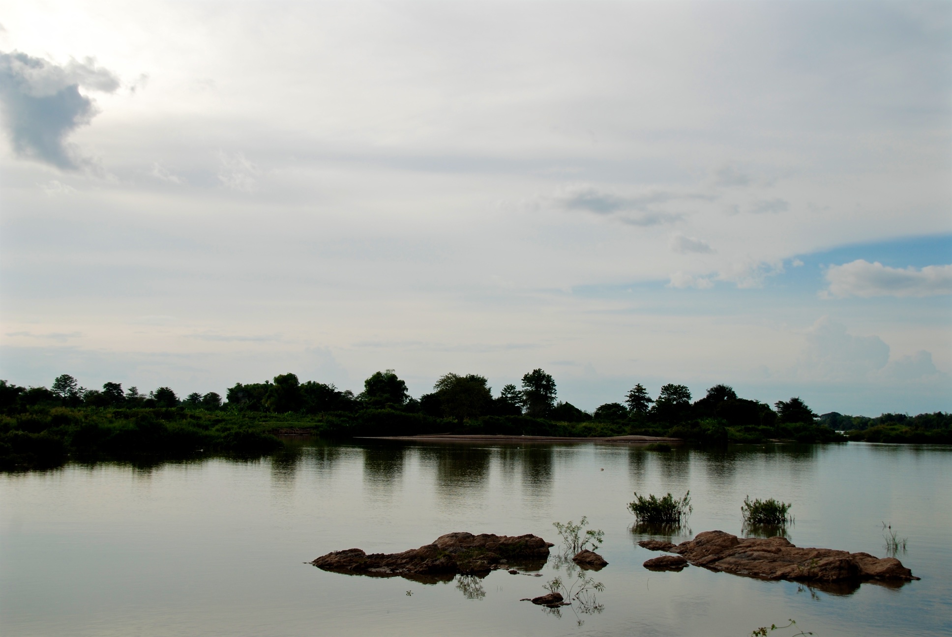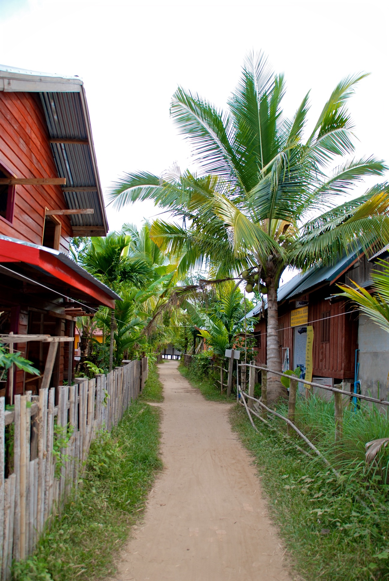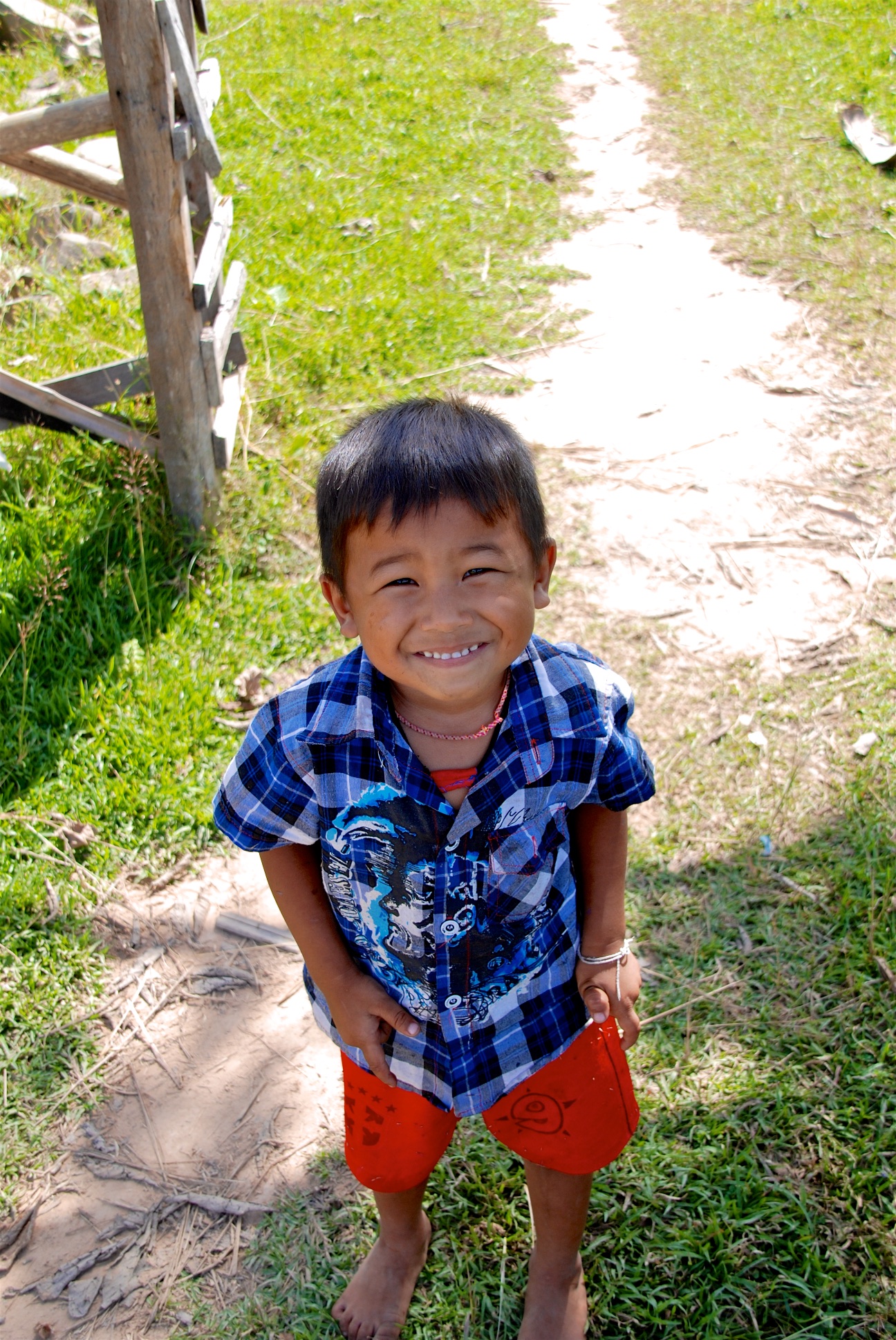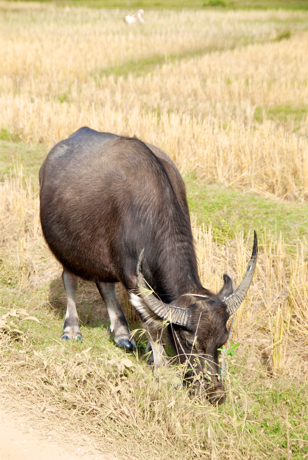 Gegen halb drei bin ich dann wieder losgeradelt, um die Insel weiter zu erkunden. Der Weg war sehr schmal und führte am Ufer entlang vorbei an den Reisfeldern im Inneren der Insel. Alle paar Meter kam ein Haus, überall liefen Hühner herum und auch um einige grasende Wasserbüffel musste ich herumfahren. Irgendwann wurde der Weg dann aber noch schmaler und steinig dazu. Außerdem wurden die Abstände zwischen den Häusern immer größer. Da ich keine Karte hatte, bin ich dann umgekehrt und wieder nach Don Det hinüber geradelt.