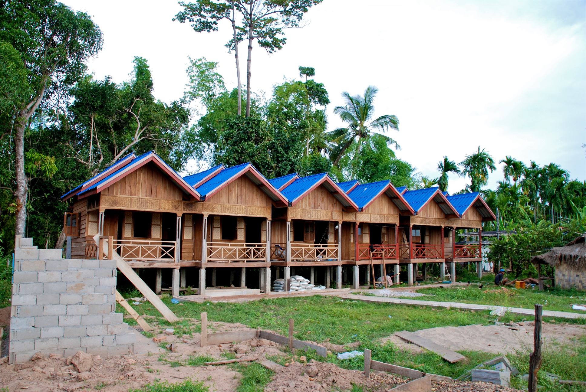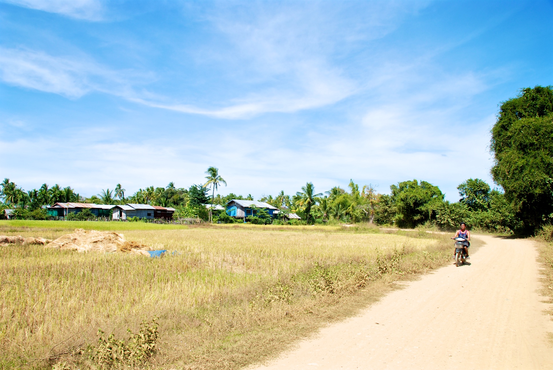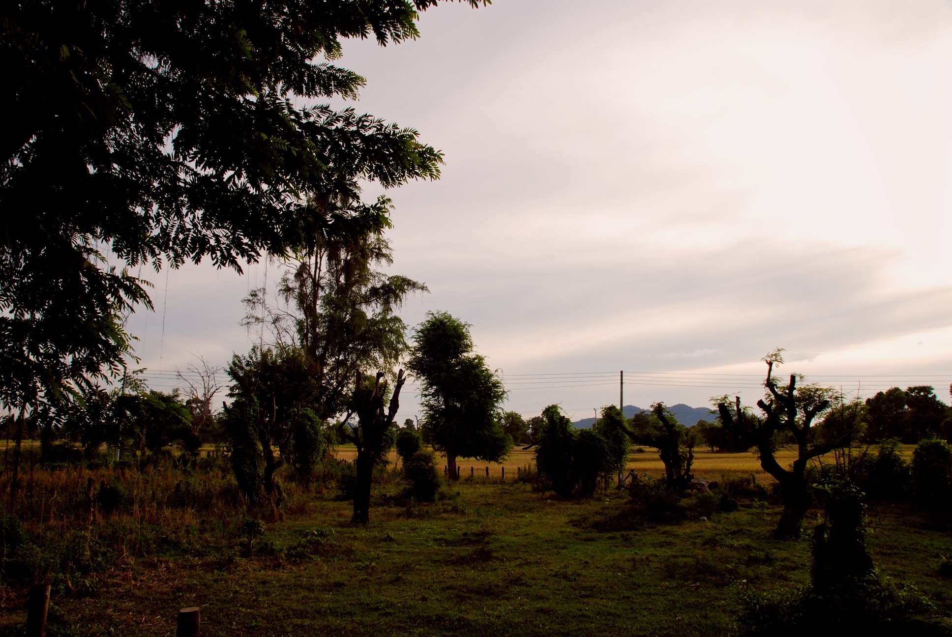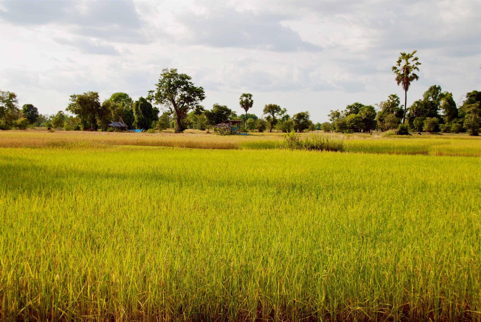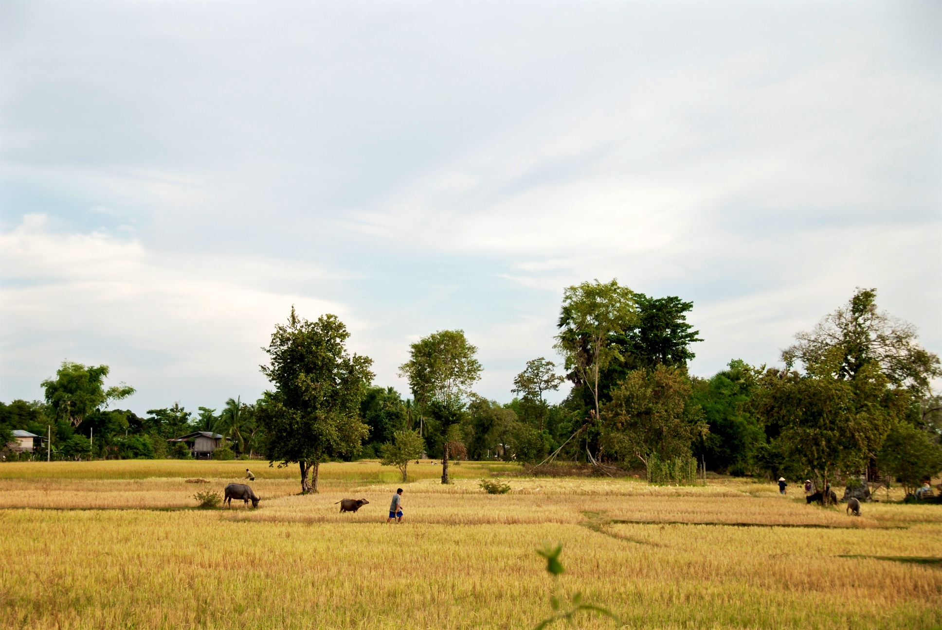 Gegen halb drei bin ich dann wieder losgeradelt, um die Insel weiter zu erkunden. Der Weg war sehr schmal und führte am Ufer entlang vorbei an den Reisfeldern im Inneren der Insel. Alle paar Meter kam ein Haus, überall liefen Hühner herum und auch um einige grasende Wasserbüffel musste ich herumfahren. Irgendwann wurde der Weg dann aber noch schmaler und steinig dazu. Außerdem wurden die Abstände zwischen den Häusern immer größer. Da ich keine Karte hatte, bin ich dann umgekehrt und wieder nach Don Det hinüber geradelt.