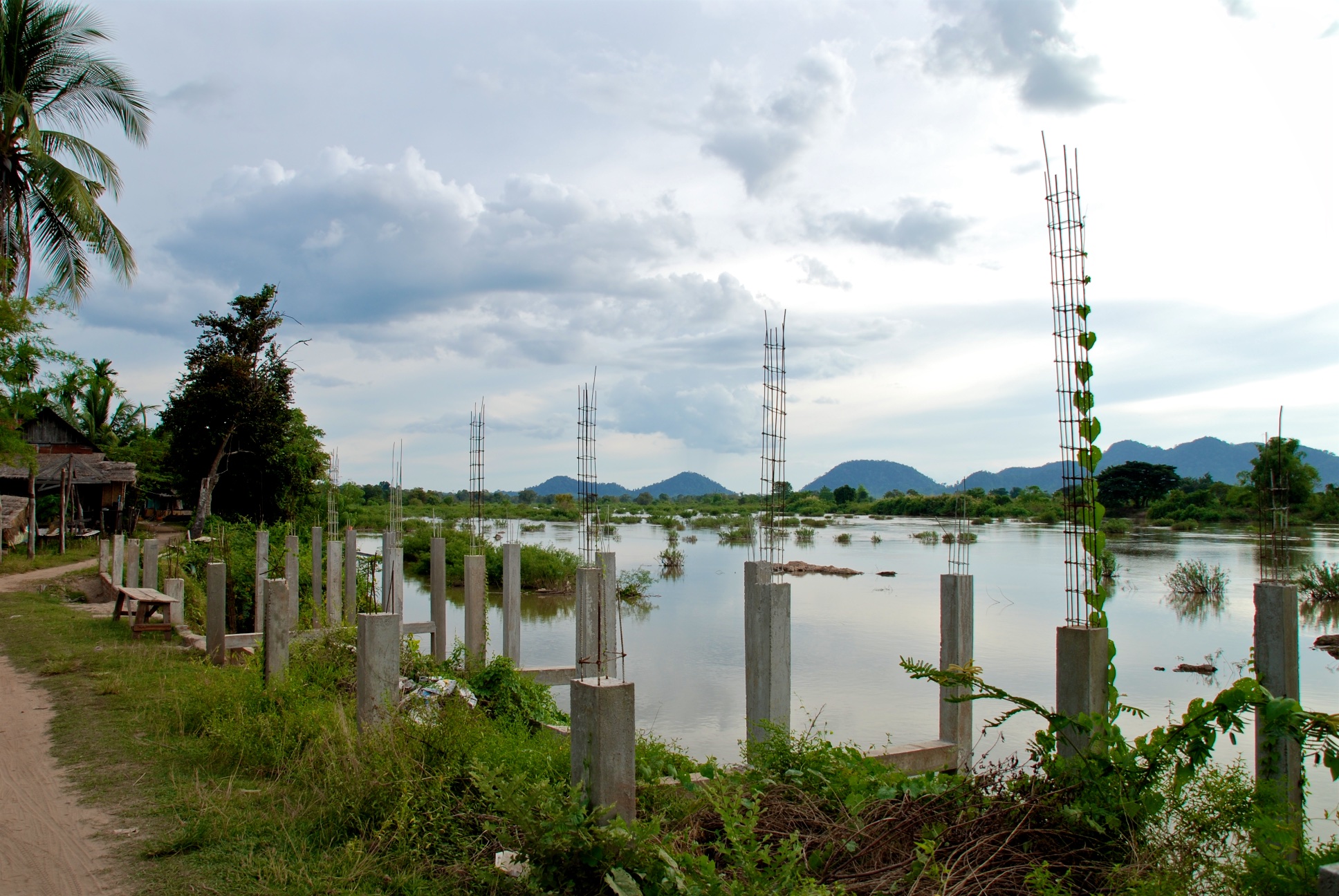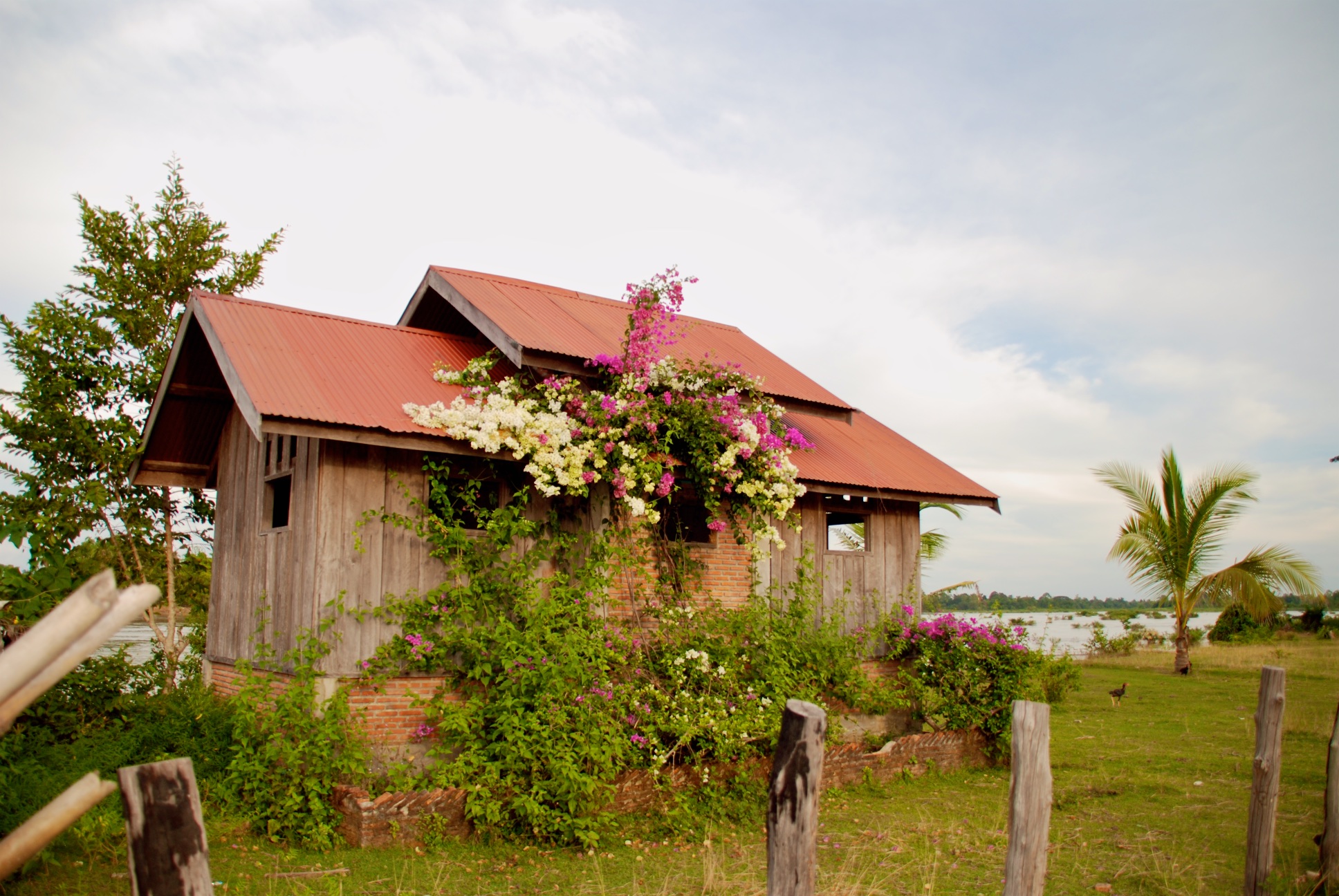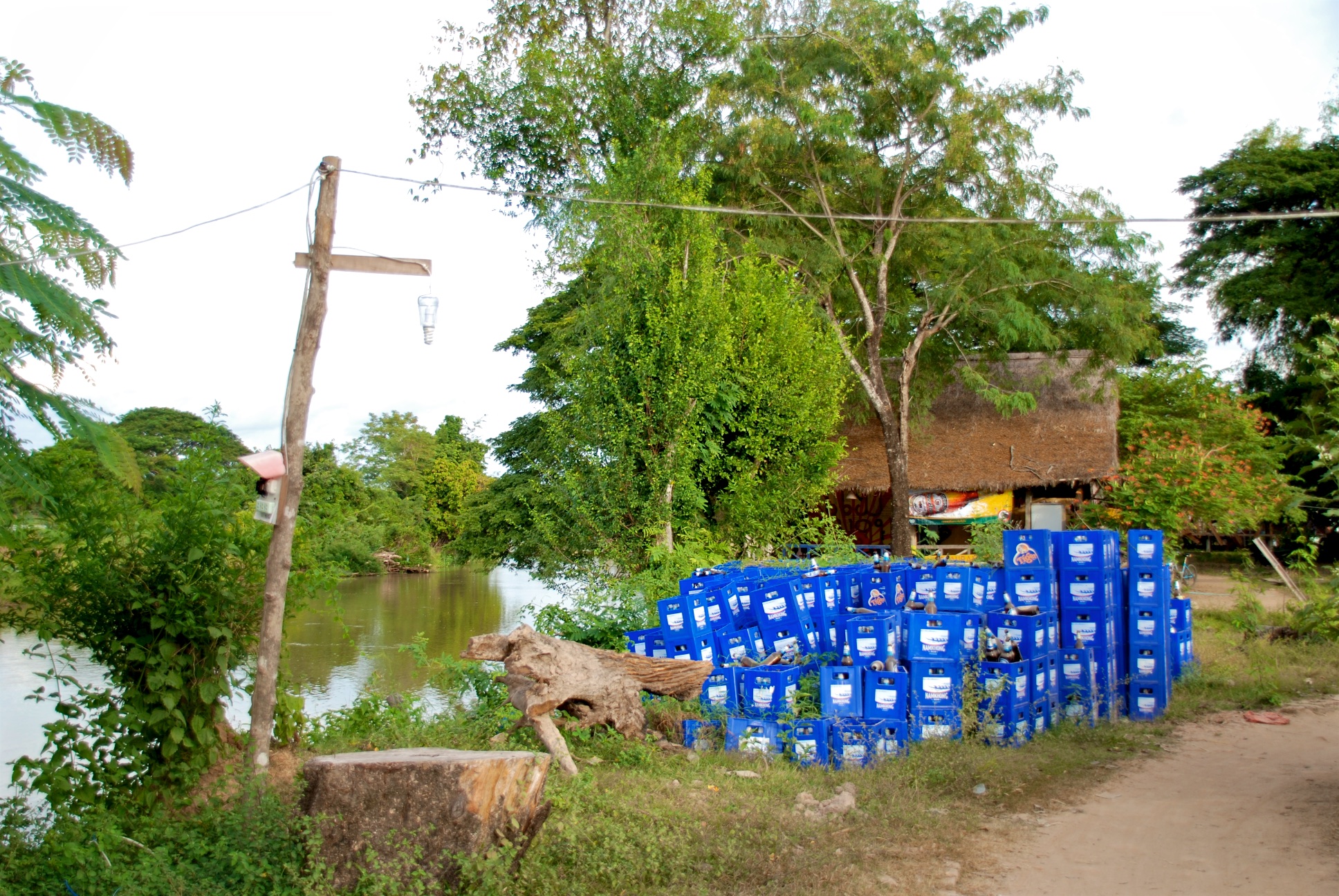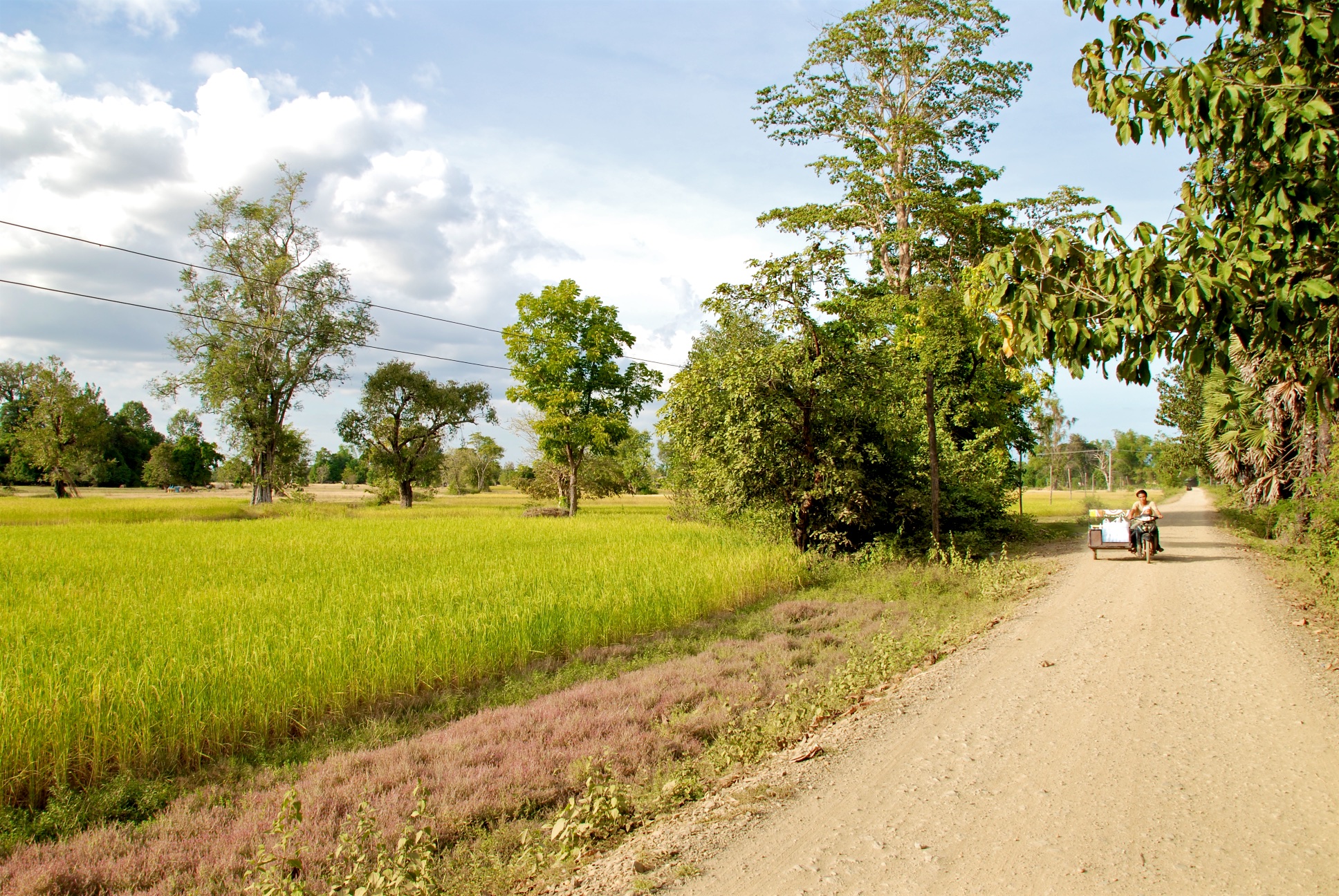 Gegen halb drei bin ich dann wieder losgeradelt, um die Insel weiter zu erkunden. Der Weg war sehr schmal und führte am Ufer entlang vorbei an den Reisfeldern im Inneren der Insel. Alle paar Meter kam ein Haus, überall liefen Hühner herum und auch um einige grasende Wasserbüffel musste ich herumfahren. Irgendwann wurde der Weg dann aber noch schmaler und steinig dazu. Außerdem wurden die Abstände zwischen den Häusern immer größer. Da ich keine Karte hatte, bin ich dann umgekehrt und wieder nach Don Det hinüber geradelt.