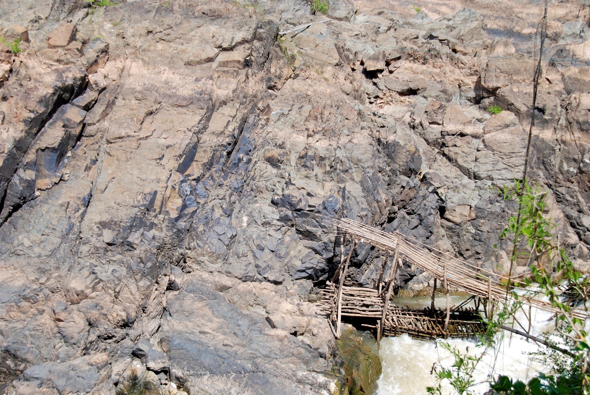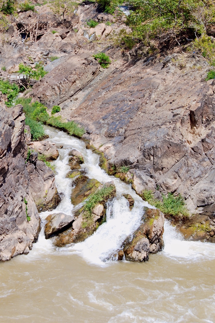 Den zweiten Tag auf Don Det habe ich für einen Ausflug mit dem Fahrrad nach Don Khon genutzt. Dafür bin ich zuerst auf Don Det durch die Reisfelder in Richtung Süden geradelt und dann über die alte französische Eisenbahnbrücke rüber nach Don Khon. Um Don Khon zu besuchen, muss man 25000 Kip bezahlen, aber dies schließt den Eintritt zu den Li Phi Wasserfällen ein.