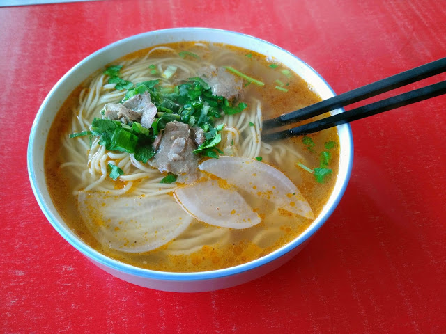 Da es mittlerweile schon Mittag war, habe ich mir mit Hilfe meines Lonely Planet-Reiseführers ein Restaurant ausgesucht. Sehr viel Auswahl gab es in der Altstadt ohnehin nicht. Die Nudelsuppe mit Rindfleisch, die ich für sage und schreibe 0,98 € bekommen habe, war sehr, sehr lecker.