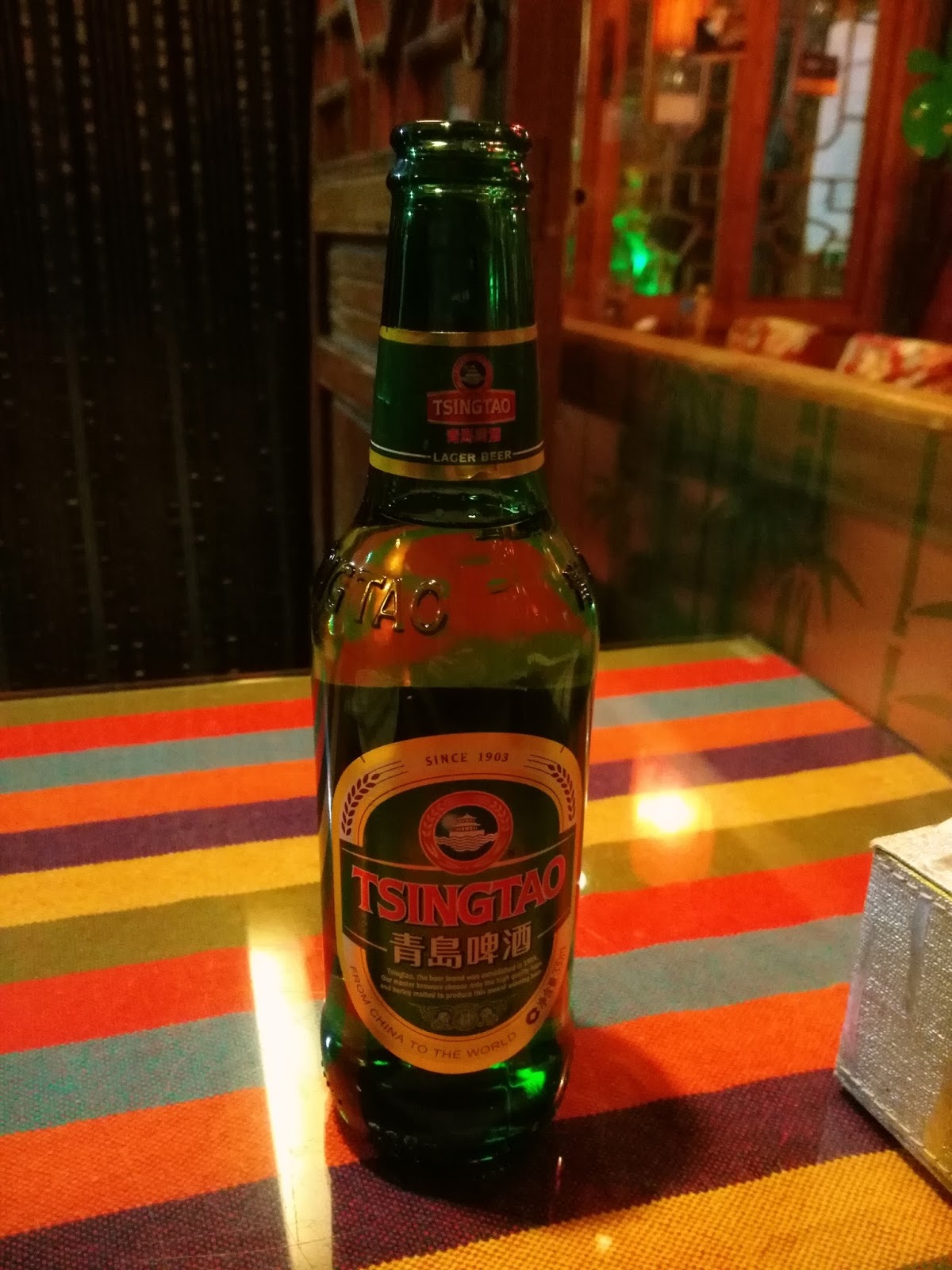Gegenüber von meinem Hotel habe ich dann auch ein Restaurant gefunden, wo ich zum Abschluss des Tages sehr lecker gegessen und das erste Tsingtau-Bier meiner Reise getrunken habe.