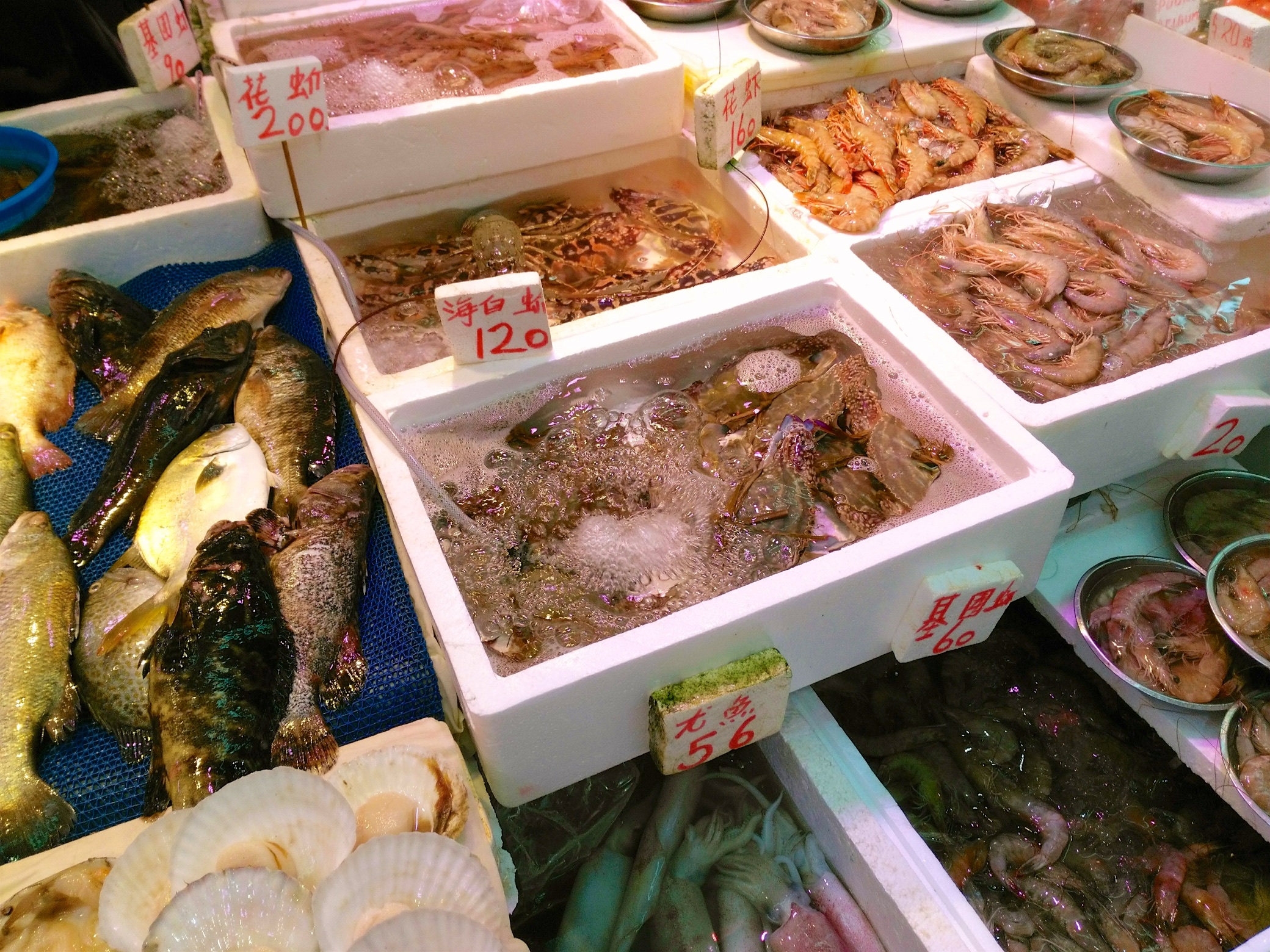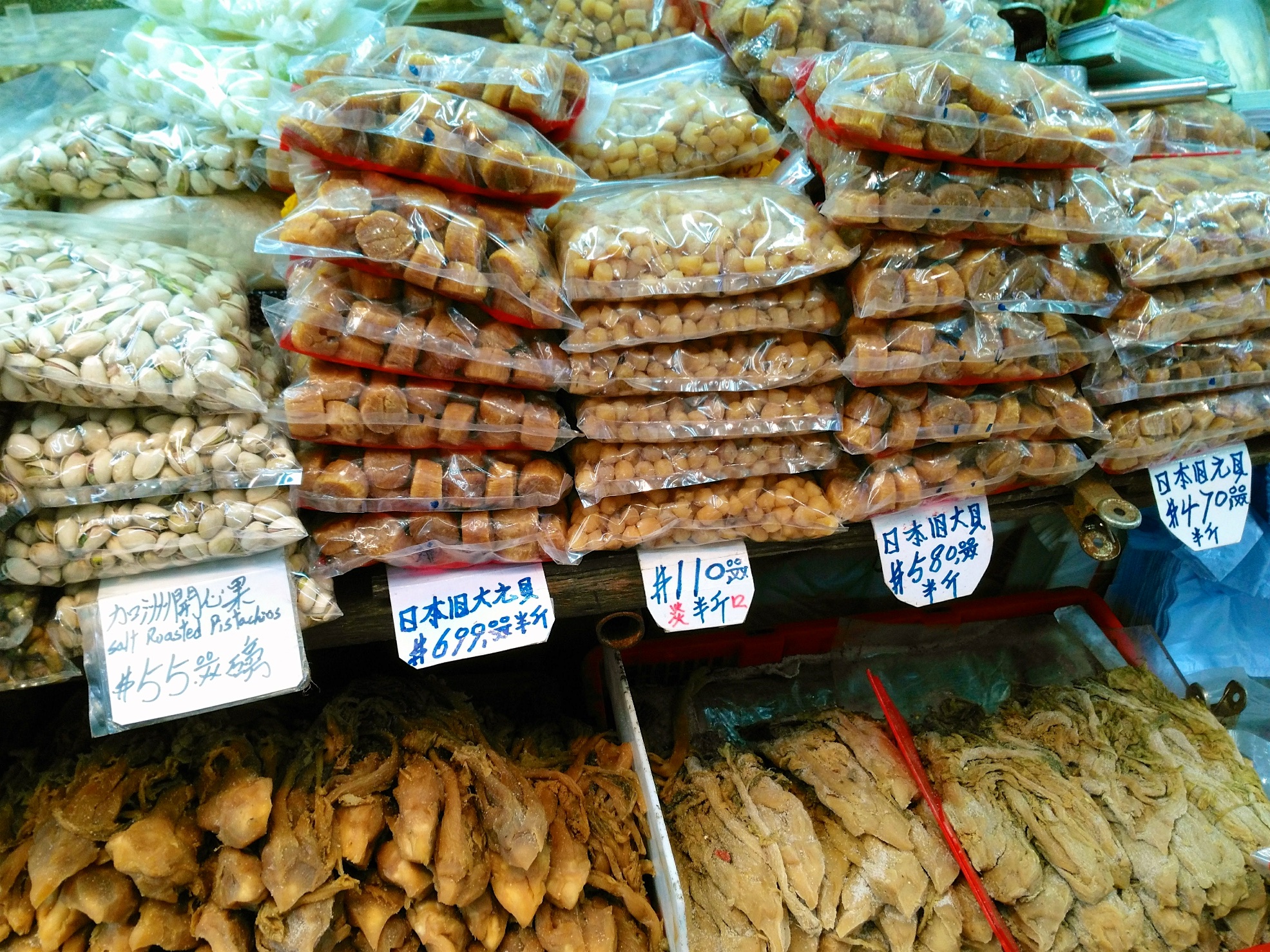Vom „Dragon Restaurant“ sind wir durch die kleinen Straßen von Central Richtung Hollywood Road gelaufen. Auf dem Weg sind wir an allerlei Marktständen vorbei gekommen.