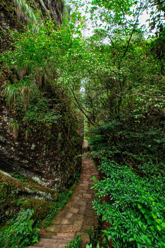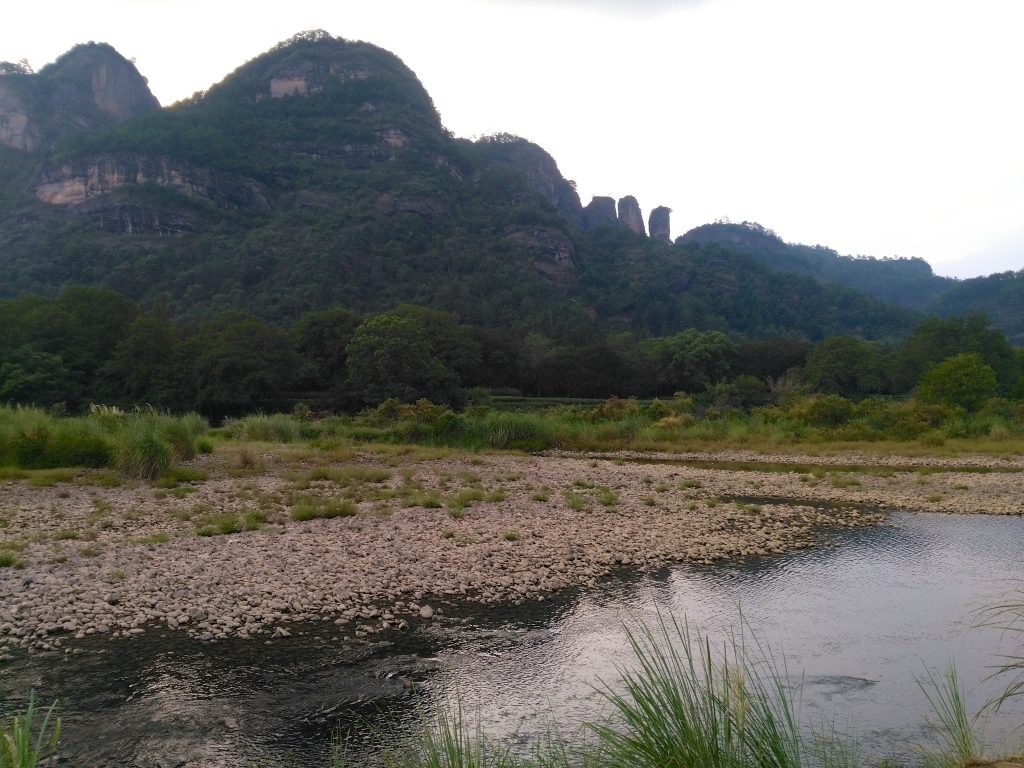 Pünktlich um 8:30 Uhr hat mich Jenny dann abgeholt und wir sind mit ihrem Auto zum nördlichen Eingang zur „Scenic Area“ gefahren. Nachdem Jenny mein Ticket am Schalter abgeholt hatte, sind wir mit dem Bus zur Haltestelle für die „Water Curtain Cave“ gefahren. Allerdings war dies nicht unser Ziel, sondern nur der Ausgangspunkt für unseren insgesamt fast zweistündigen Spaziergang zur „Dahongpao Scenic Area“. Jenny erklärte mir, dass die chinesischen Tourgruppen vom anderen Ende aus in das „Tea Valley“ hineinlaufen und zwar nur ca. 20 Minuten, um dann wieder umzukehren. So blieben mir die Tourgruppen größtenteils erspart. Kleinere Gruppen von chinesischen Besuchern waren natürlich auch auf dem Weg unterwegs, den Jenny für uns gewählt hatte, aber ohne nervige Führer mit Mikrofon und Lautsprecher.