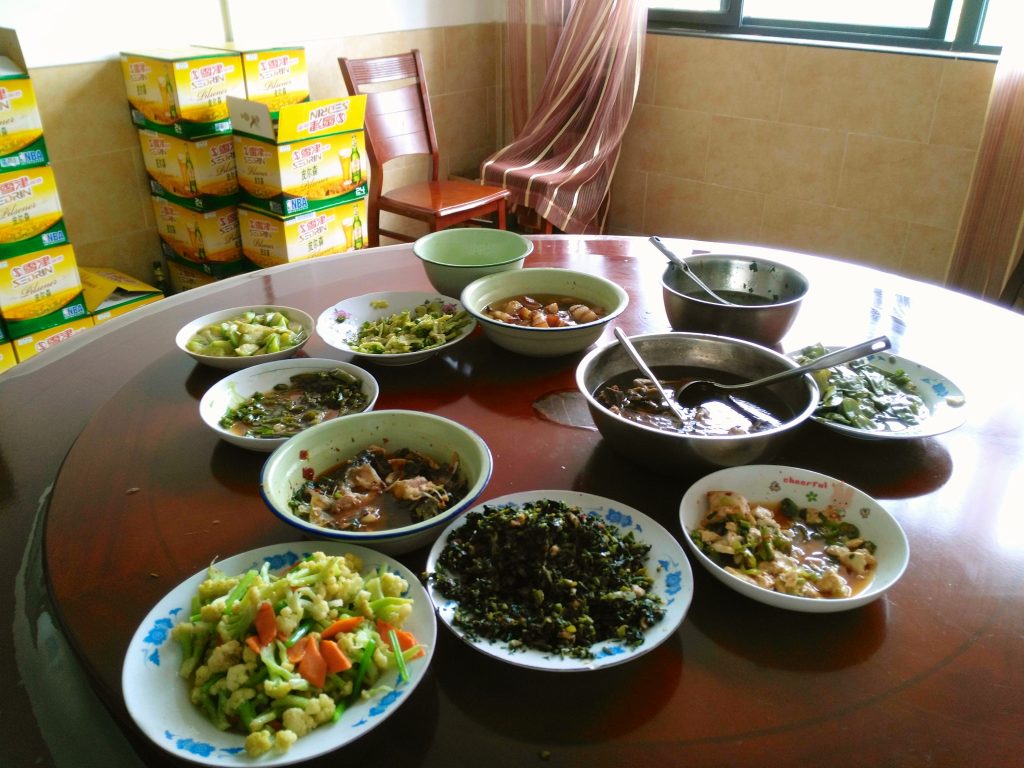 Nachdem wir unseren Spaziergang beendet hatten, hat Jenny mich zum Mittagessen in das Haus ihres Onkels mitgenommen. Die Familie handelt mit Tee und im Haus ihres Onkels wird der Tee verpackt und verkauft. Jenny’s Tante kocht jeden Mittag für die Familie und auch für die Angestellten und so konnten wir einfach mitessen. Das Essen war sehr lecker. Und ich war geehrt und erfreut, dass ich einen Einblick in das Alltagsleben einer chinesischen Familie bekommen durfte.