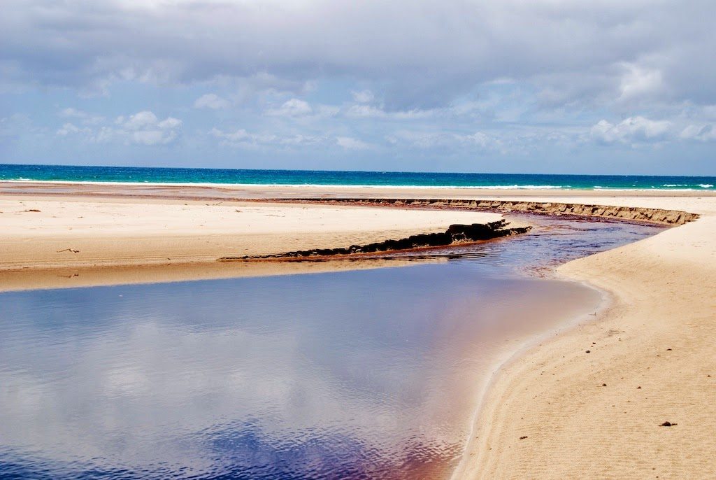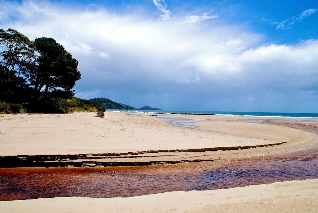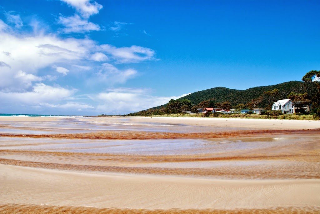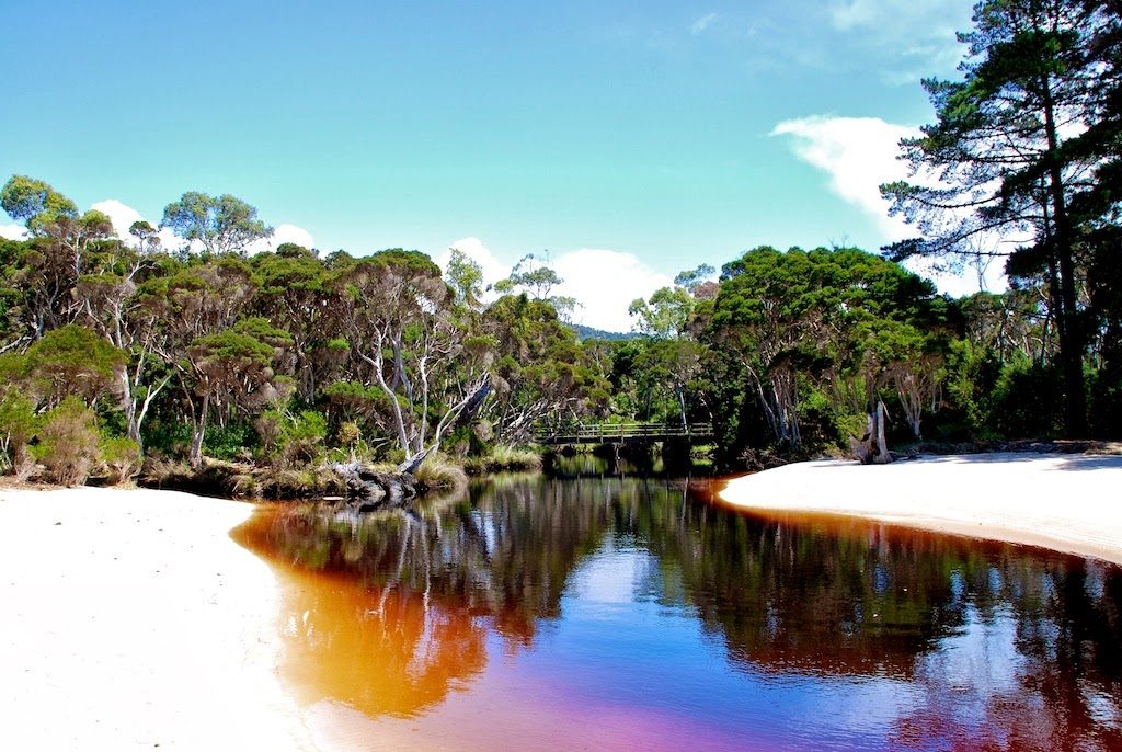 Gegen Mittag sind Mary und ich dann mit meinem kleinen roten Auto Richtung Stanley gestartet. Auf dem Weg haben wir zunächst an Sisters Beach angehalten. Hier fließt ein von Tannin dunkel gefärbter Fluss ins Meer.