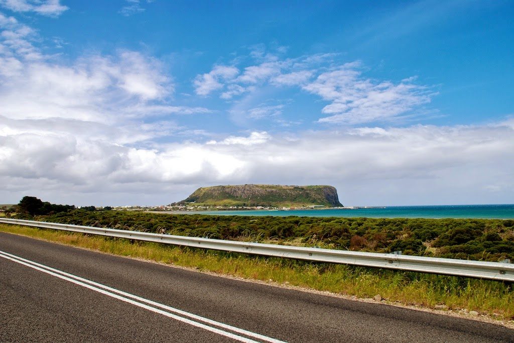 Mary und ich hatten verabredet, dass wir am Dienstag, den 10.12.2013, einen Ausflug nach Stanley machen würden, um „The Nut“ anzusehen. Allerdings hatte Mary ihrer alten Nachbarin versprochen, vormittags mit ihr in die Stadt zu fahren und ein paar Erledigungen zu machen. Also bin ich morgens zunächst auch nach Devonport reingefahren und habe mir ein wenig die Stadt angesehen. Devonport hat eine ganz nette autofreie Einkaufszone und ich habe zunächst eine ganze Weile in einem Buchladen verbracht und danach – es fing leider an zu regnen – noch viel länger in einem Outdoor-Laden.