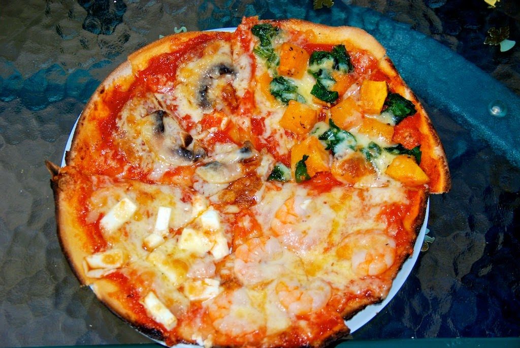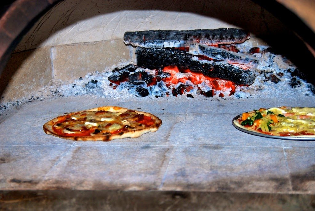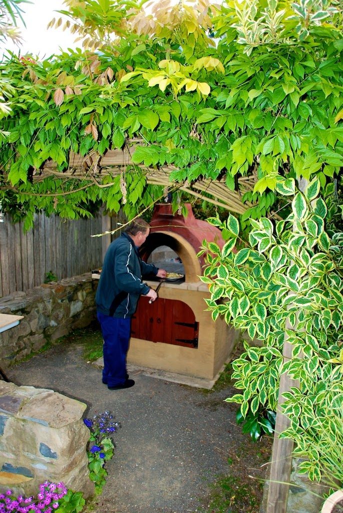Während Mary und ich unseren Ausflug gemacht haben, hat Graeme die Vorbereitungen für unseren Pizza-Abend mit Debbie und Ian getroffen. Graeme hat sich einen Pizzaofen in den Garten gebaut und hatte sich extra den Tag freigenommen, um den Ofen vorzuheizen sowie den Pizzateig und den Belag vorzubereiten. Die Zutaten waren als Buffet aufgebaut und jeder konnte sich selbst seinen Pizzateig ausrollen und belegen. Ich erzählte meinen Bekannten noch, dass in Italien der Käse unter den Belag kommt und machte es dann prompt selber falsch! Mein Pizza hat trotzdem klasse geschmeckt. Und nach der herzhaften Pizza gab es auch noch Dessert-Pizza – Pizzateig mit süßer Sauce und Erdbeeren belegt. Yummy!