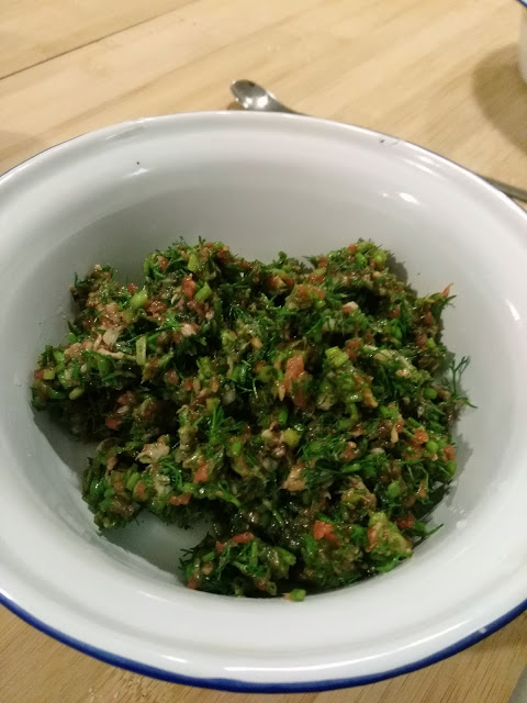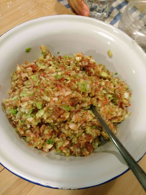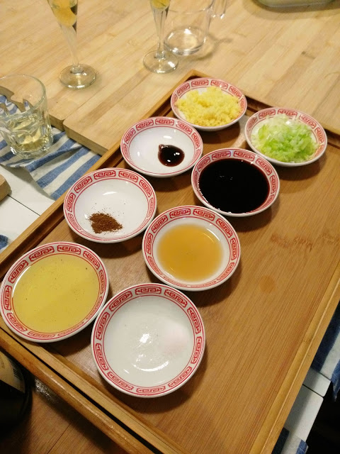 Während wir darauf warteten, dass der Teig aufging, erklärte uns Joyce welche Füllungen wir für die Dumplings machen würden und erklärte auch die dabei verwendeten Gewürze und Saucen.