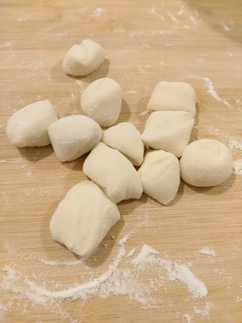 Der Teig für die Dumplings bestand nur aus Wasser und Mehl, für den Nudelteig kam noch etwas Salz dazu. Beide mussten abgedeckt eine ganze Weile gehen.