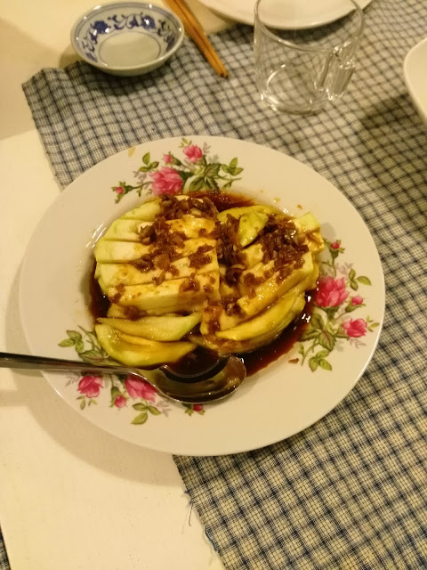Neben den Dumplings und den gezogenen Nudeln kamen auch noch ein paar andere Gerichte auf den Tisch, u.a. sehr leckere Aubergine und frittierte Süßkartoffel.