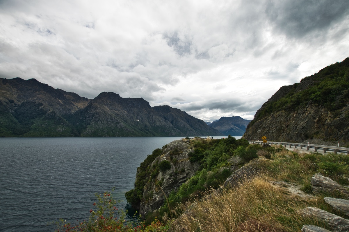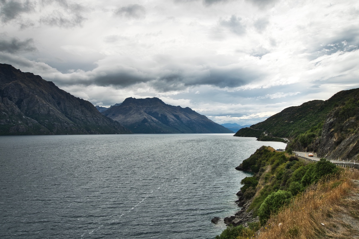 Danach ging es zügig (so zügig, wie man in Neuseeland eben fahren kann) weiter bis zum Devil’s Staircase genannten Abschnitt des State Highway 6. Hier windet sich die Straße am Ufer des Lake Wakatipu entlang. Ich habe hier natürlich angehalten und den Lake Wakatipu fotografiert, aber ich habe auch ein kurzes Video der Fahrt am Devil’s Staircase gedreht.