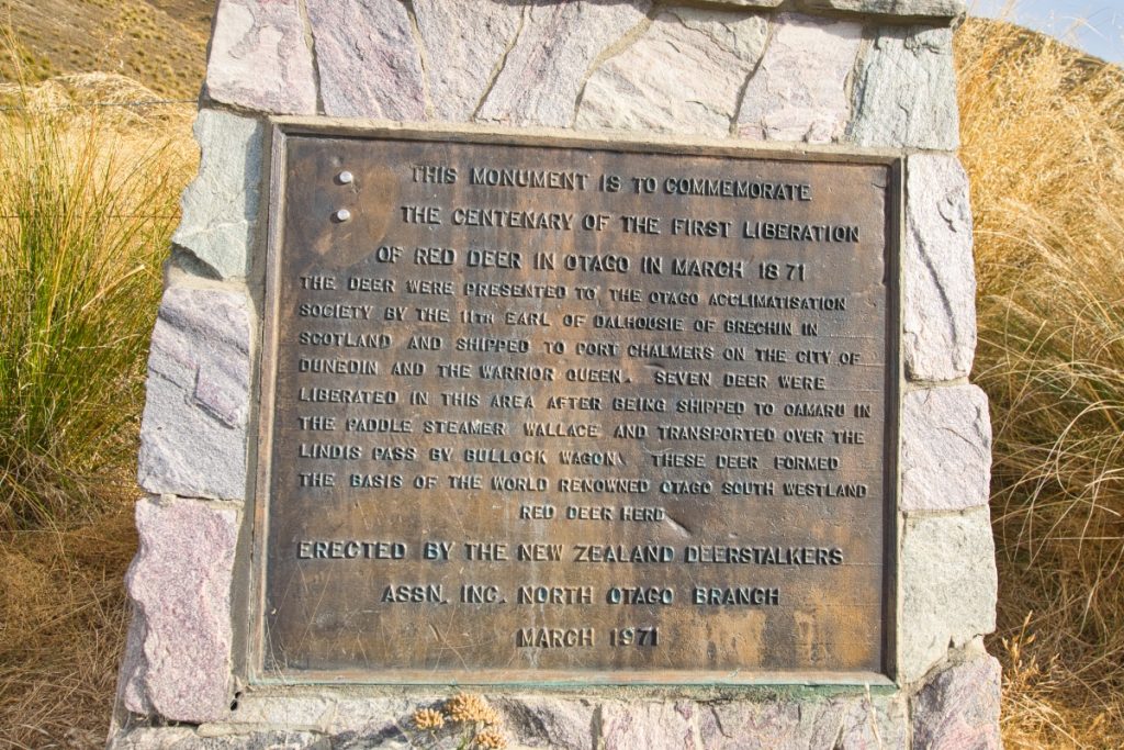 Etwas erstaunt hat mich am Lindis Pass, dass dort eine Gedenktafel für die erste Auswilderung von Rotwild in der Region Otago im Jahr 1871 aufgestellt ist. Immerhin gilt das ausgewilderte Rotwild mittlerweile als absolute Plage. Dazu verliert die Gedenktafel allerdings kein Wort.