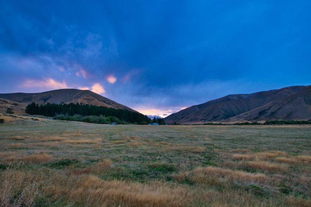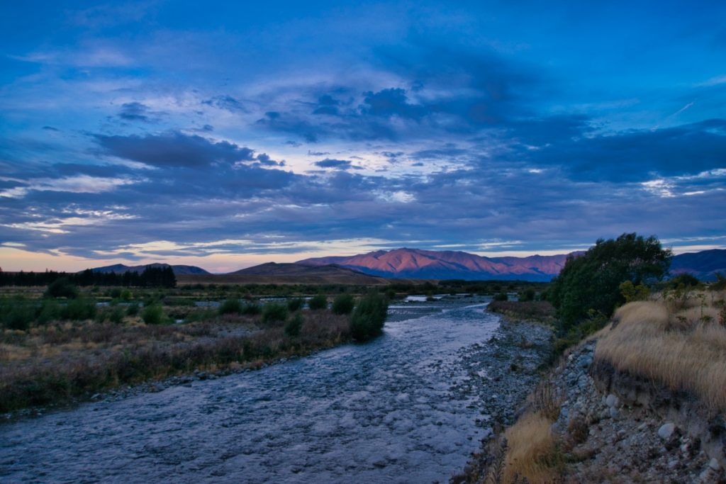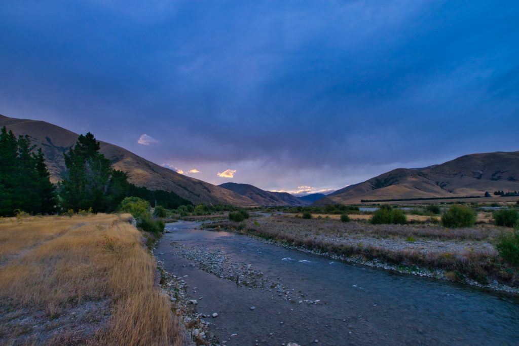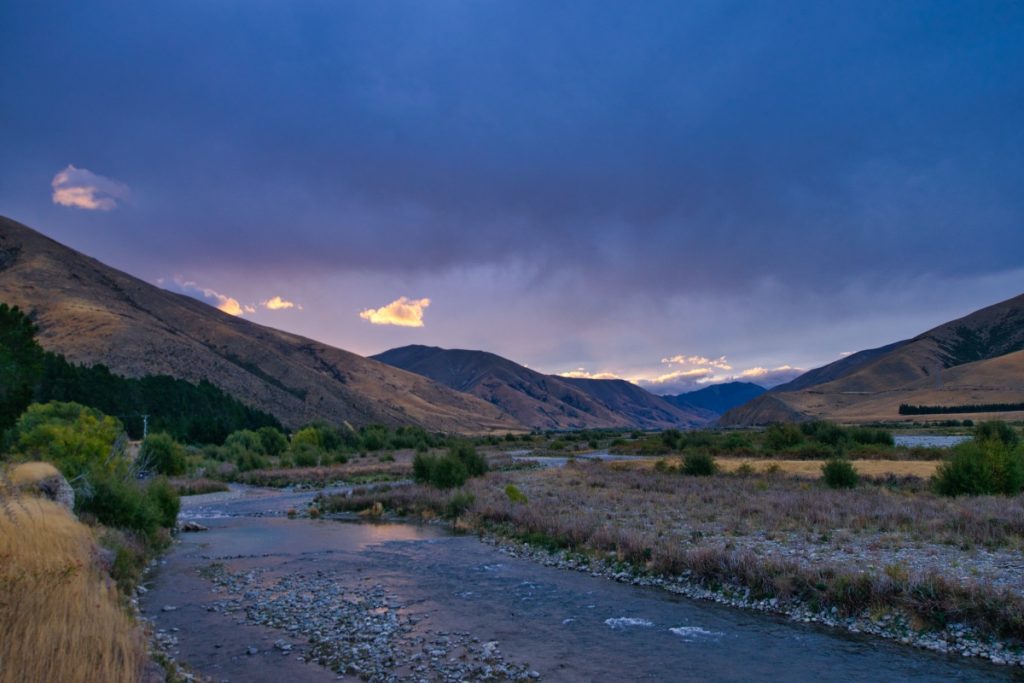 Auf der Rückfahrt nach Dunstan Downs habe ich noch einmal kurz angehalten, um den Abendhimmel über dem Ahuriri River zu fotografieren.