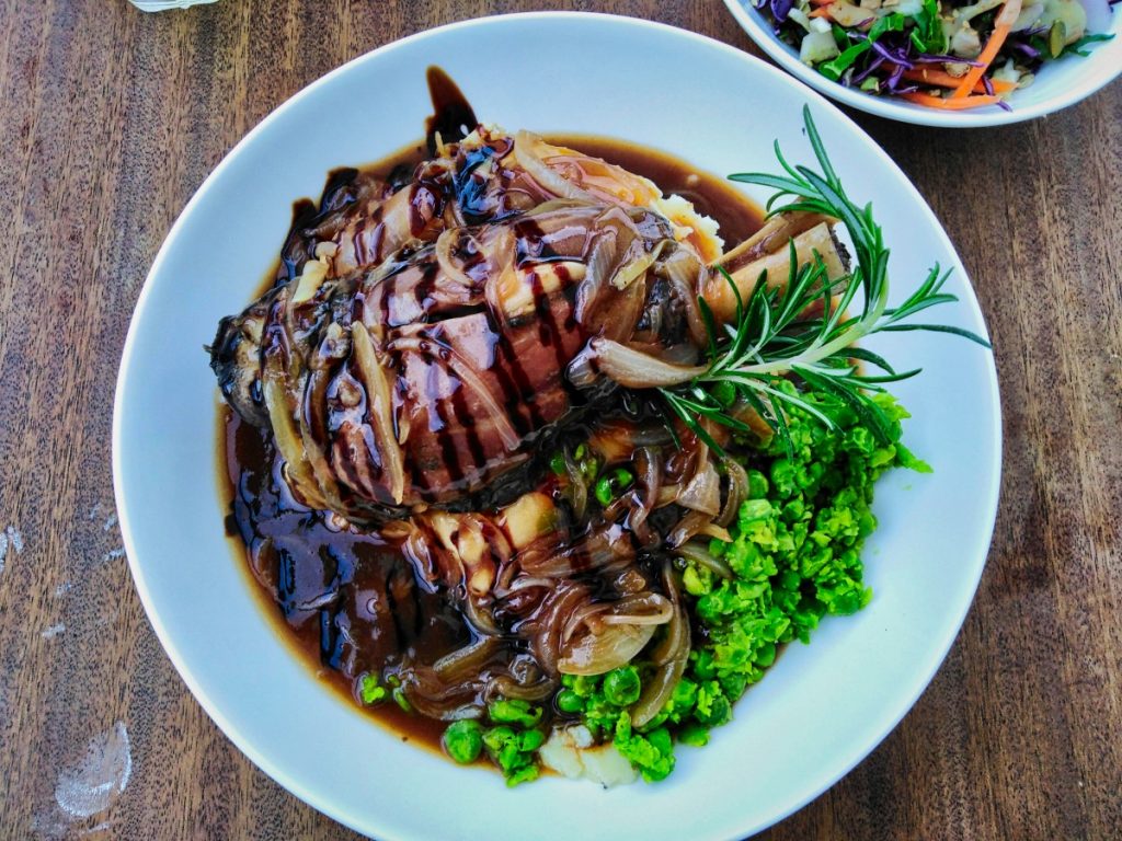 Meine Gastgeber Geva und Tim haben mich sehr herzlich empfangen. Als ich ankam, war Tim dabei an der Einfahrt zur Farm einen kleinen Graben zu graben, da es am nächsten Tag heftigen Regen geben sollte und er einen Abfluss schaffen wollte. Er sagte mir ich solle einfach zum Haus weiterfahren, mein Zimmer sei im Erdgeschoss, ich müsse durch die Waschküche gehen und solle es mir schonmal gemütlich machen, er wäre in 15 Minuten mit seiner Arbeit fertig. Als Tim dann ankam, hat er mir erstmal einen Tee gemacht und mir ein paar selbstgebackene Cookies angeboten. Dann haben wir uns eine Weile unterhalten, bevor ich mich auf den Weg nach Omarama gemacht habe, um dort zu Abend zu essen. Tim hatte mir das Pink Glider Café empfohlen. Eine sehr gute Empfehlung, wie sich herausstellen sollte. Es gab Lambshank – das Fleisch viel geradezu vom Knochen und war extrem zart und sehr lecker.