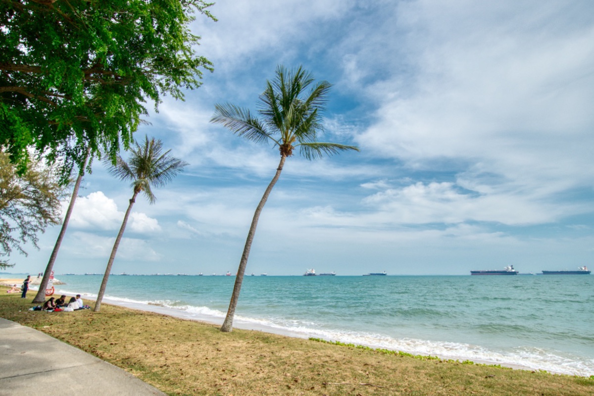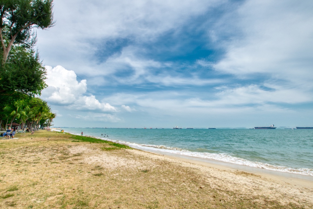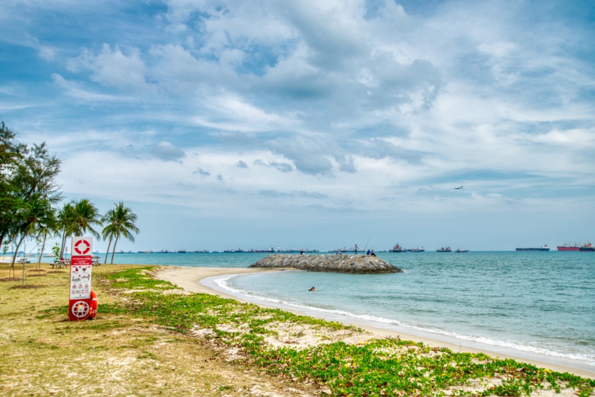 Nach einer halben Stunde bin ich dann aber doch losgelaufen und zwar bis zum East Coast Lagoon Food Village. Es waren unheimlich viele Leute im East Coast Park unterwegs, einige gingen sogar im Meer baden – mit direktem Blick auf die großen Frachtschiffe, die vor Singapur darauf warteten be- bzw. entladen zu werden.