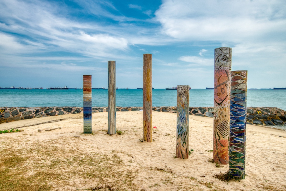 Ich habe mich eine Weile auf einen der Wellenbrecher gesetzt und das Meer und die auf den Flughafen Changi zusteuernden Flugzeuge betrachtet. Danach bin ich wieder weitergezogen. Es war sehr interessant zu sehen, was es im East Coast Park alles an Einrichtungen gab. Neben Toiletten und Duschen gab es auch Camping-Plätze und Barbecue-Stellen. Und zwar eine neben der anderen. Fast alle waren besetzt. Das Beste, was ich an diesem Tag gesehen habe, war aber eine Gruppe, die neben sich zwei Stative aufgebaut hatte – allerdings nicht, um darauf Kameras zu befestigen, sondern Stangen für Vögel und Futter. Es hatten sich auch schon ein paar bunte Papageien dort niedergelassen. Ich hätte es fotografieren sollen, habe mich aber nicht getraut zu fragen.
