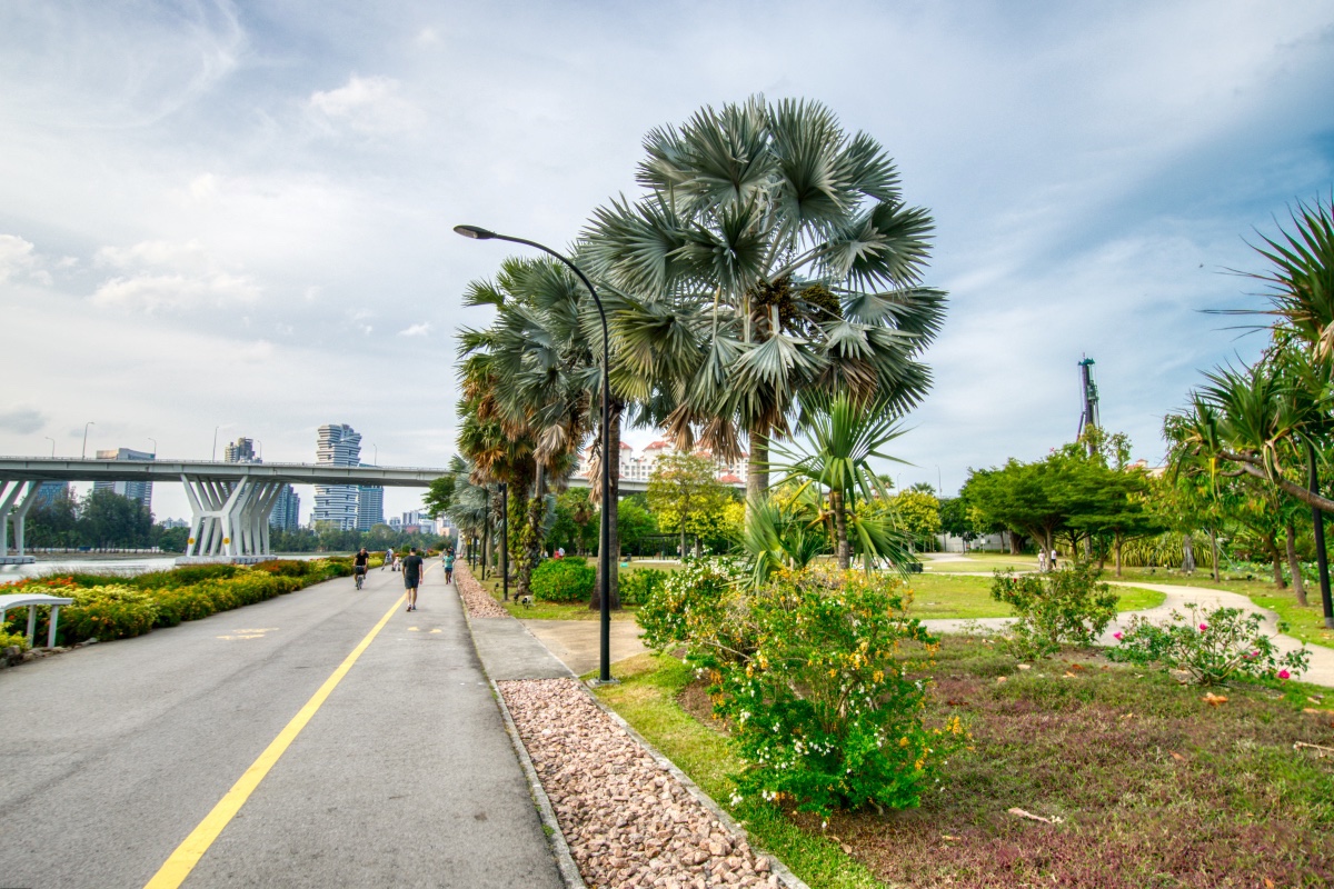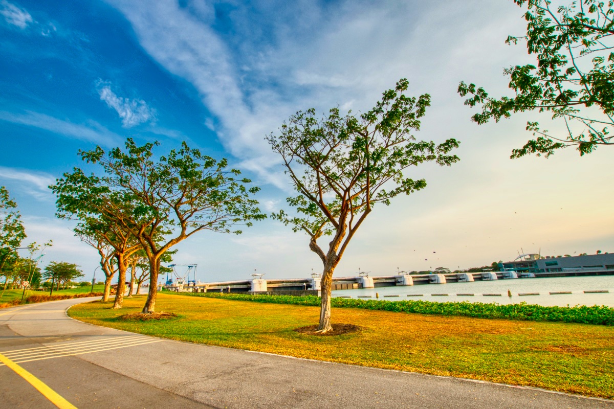 Als ich am East Coast Lagoon Village angekommen bin, war es schon recht spät und da ich zum Sonnenuntergang an der Marina Barrage sein und vorher auch noch durch die Marina Bay Gardens East laufen wollte, habe ich mir kurz entschlossen ein Taxi genommen. Das war eine gute Idee, denn auch so bin ich keine Minute zu früher an der Marina Barrage angekommen.
