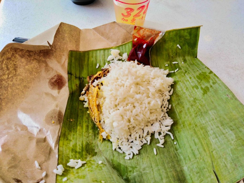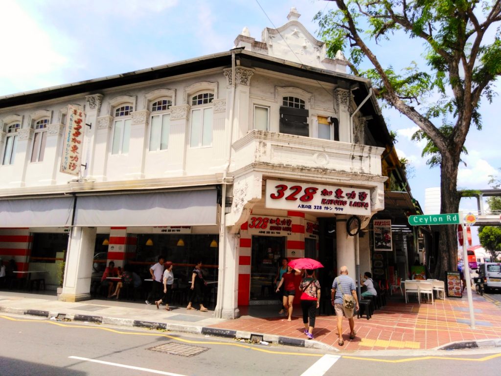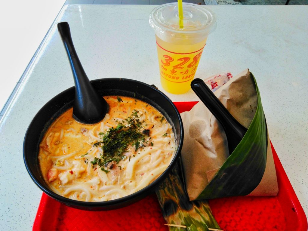 Am Sonntag habe ich den Vormittag faul im Hotel verbracht und bin erst gegen 13:30 gestartet. Der Uhrzeit angemessen, war mein erster Stop 328 Katong Laksa, ein berühmtes Laksa-Schnellrestaurant. Dort habe ich mich für eine ganze Auswahl typischer Gerichte entschieden, nämlich neben einer kleinen Portion Laksa auch noch für eine Portion Nasi Lemak und eine Portion Otah.