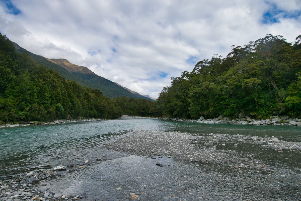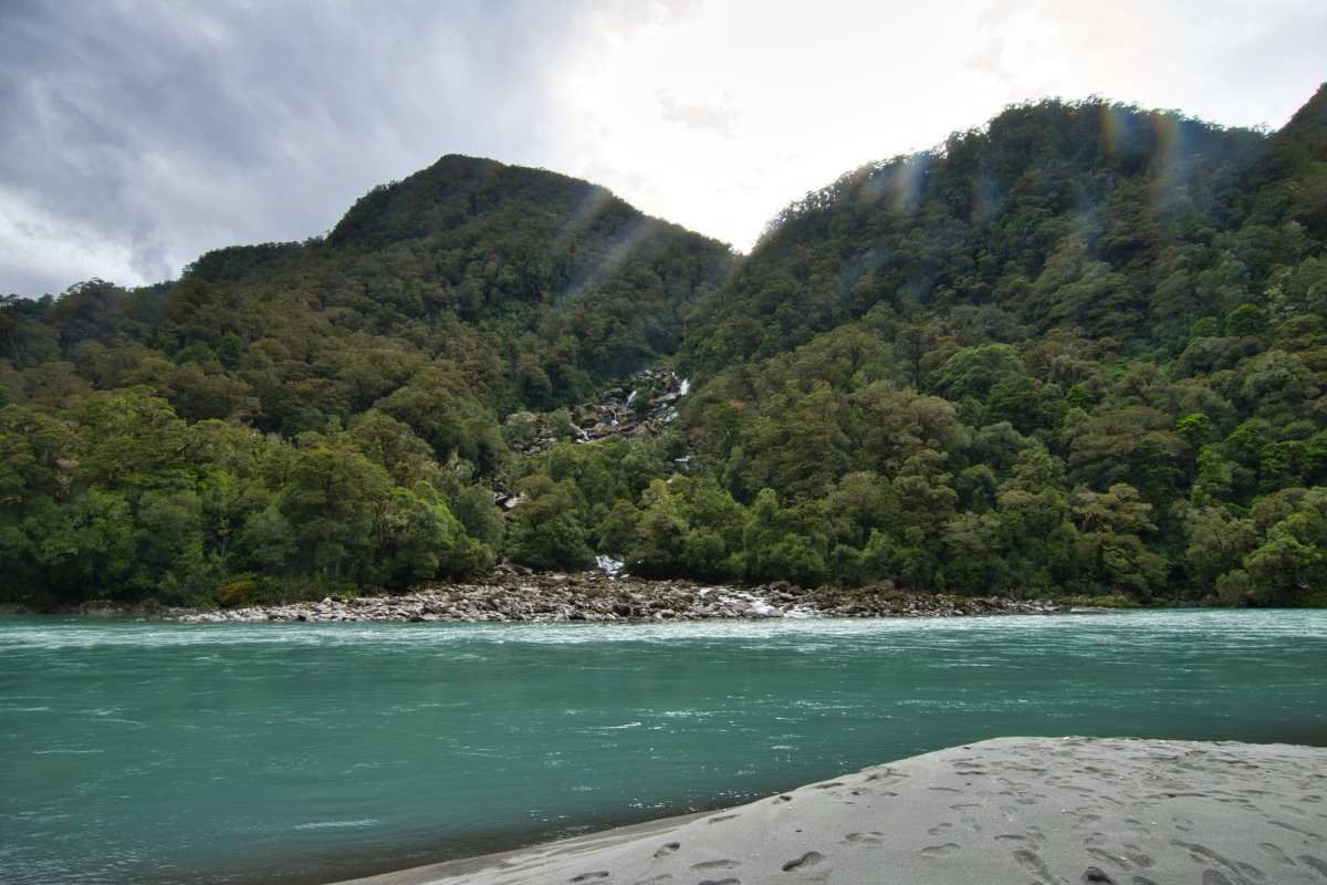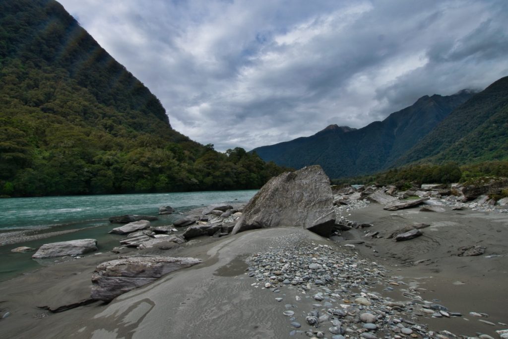 Ein Stückchen weiter gab es dann einen Aussichtspunkt am Zusammenfluss von Haast und Landsborough River. Auch dort habe ich natürlich angehalten, um ein paar Fotos zu machen.