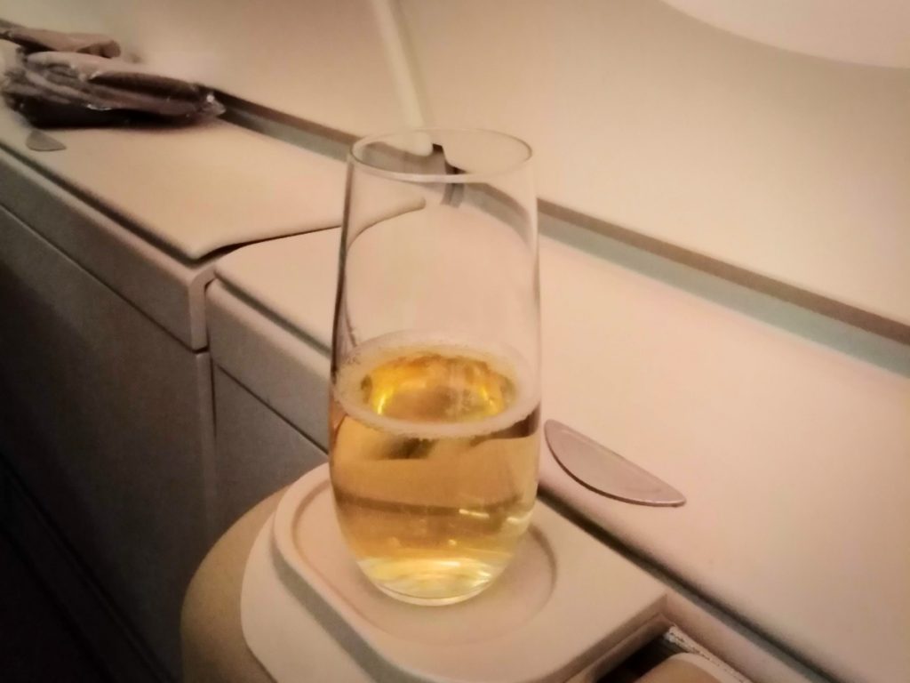 Nach dem Boarding und noch vor dem Start wurde zur Begrüßung wieder Champagner serviert 🙂