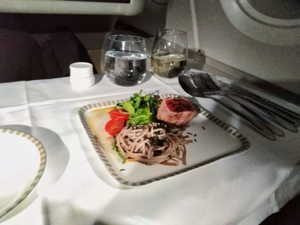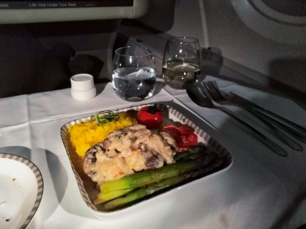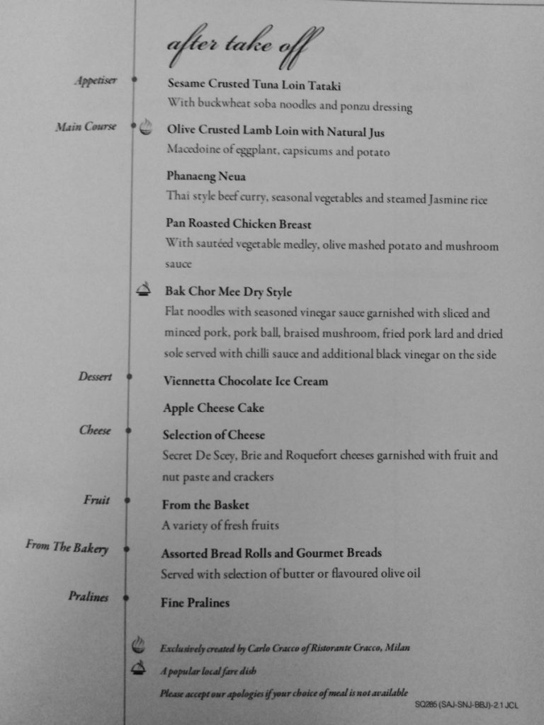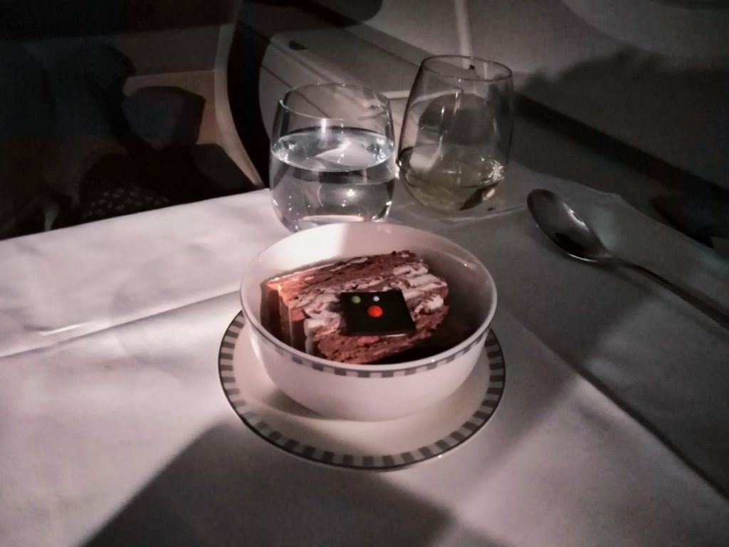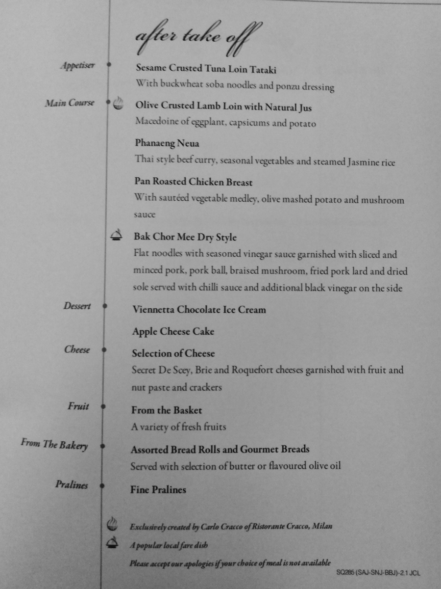 Die Speisekarte versprach wieder allerlei Leckereien – und anders als beim Flug von Rom nach Singapur hatte ich auch die „Book the Cook“-Option nutzen können. Als Hauptgericht bekam ich also etwas, was gar nicht auf der Karte stand, nämlich Hummer Thermidor!